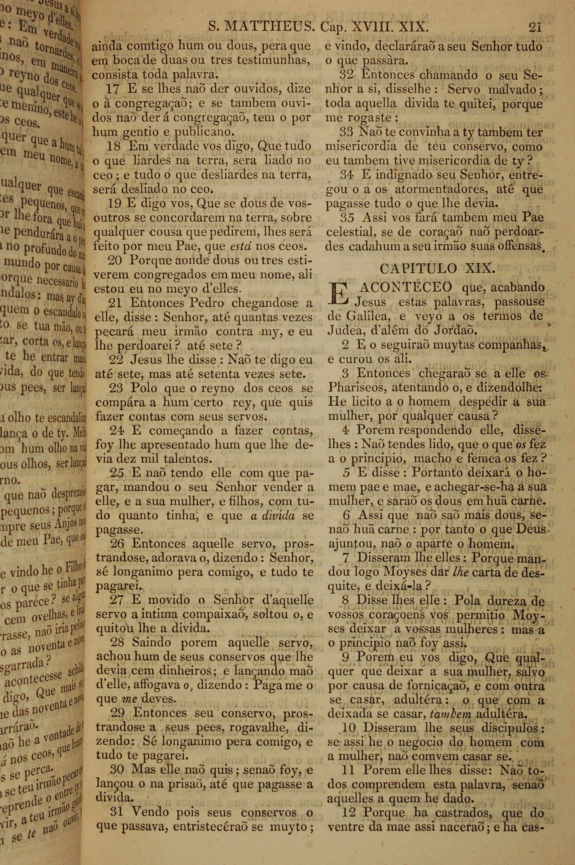 1819年葡萄牙語新約全書 馬太福音 18 章 17 節到 19 章 12 節