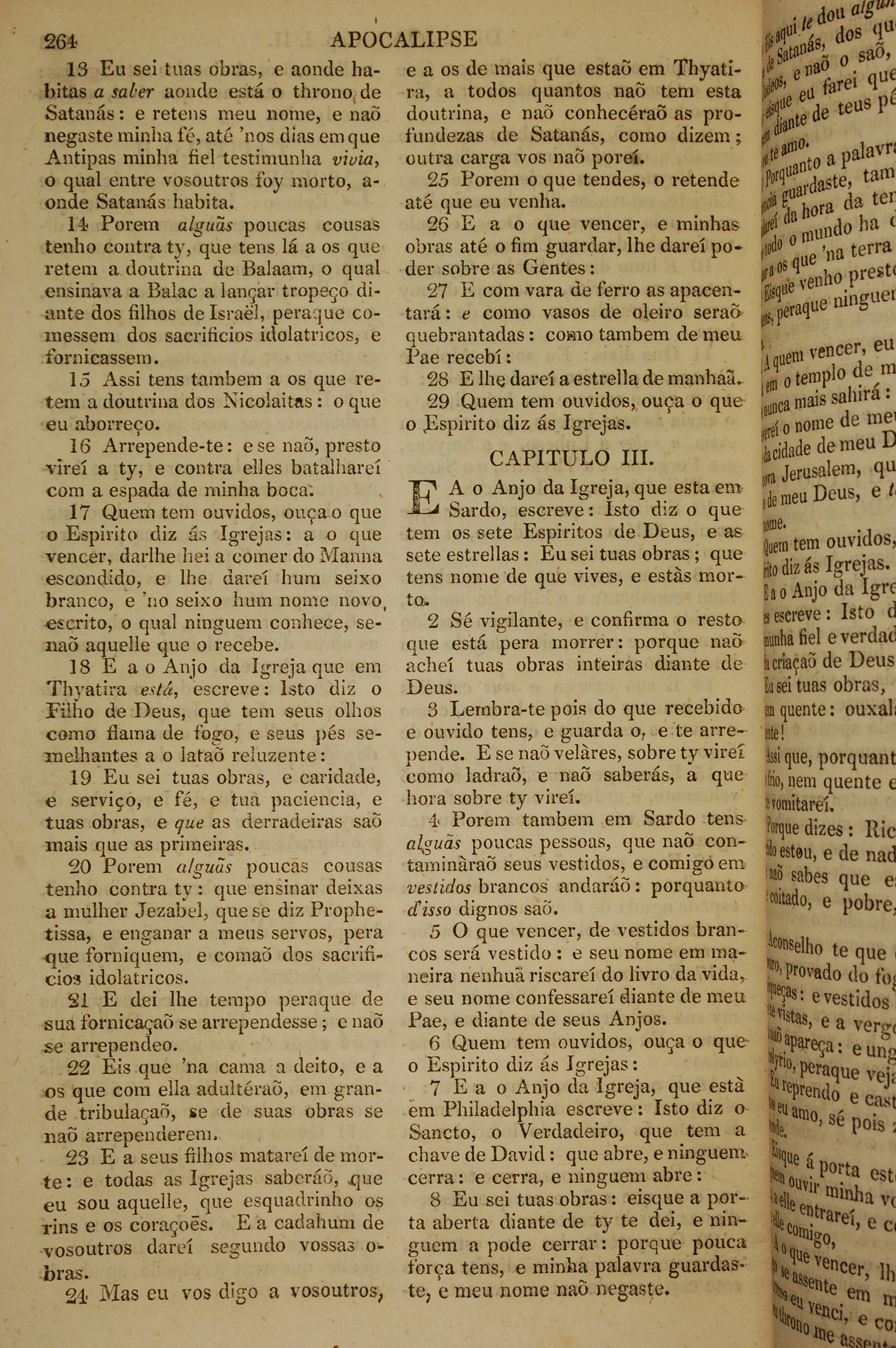 1819年葡萄牙語新約全書 啟示錄 2 章 13 節到 3 章 8 節