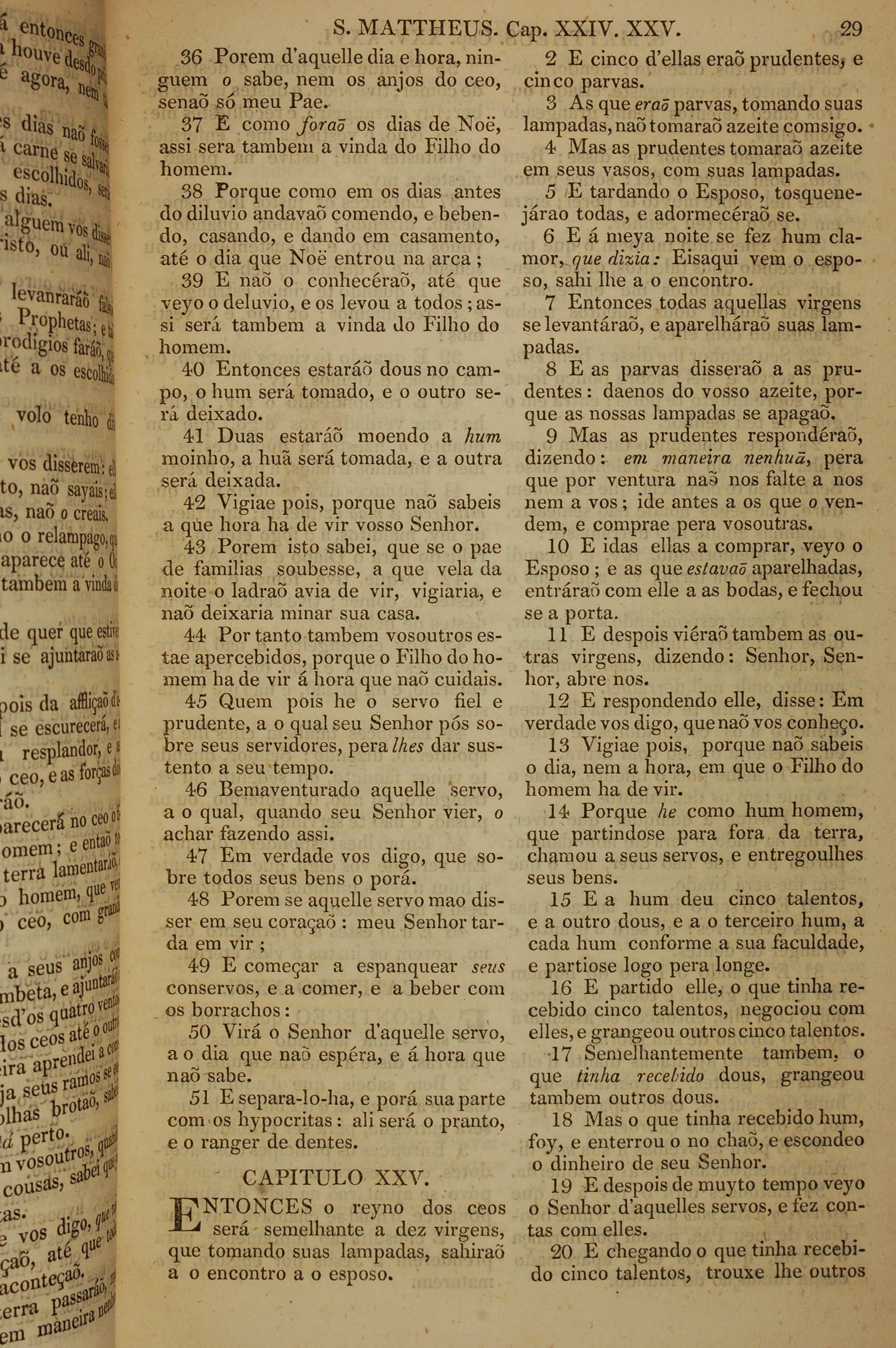 1819年葡萄牙語新約全書 馬太福音 24 章 36 節到 25 章 20 節