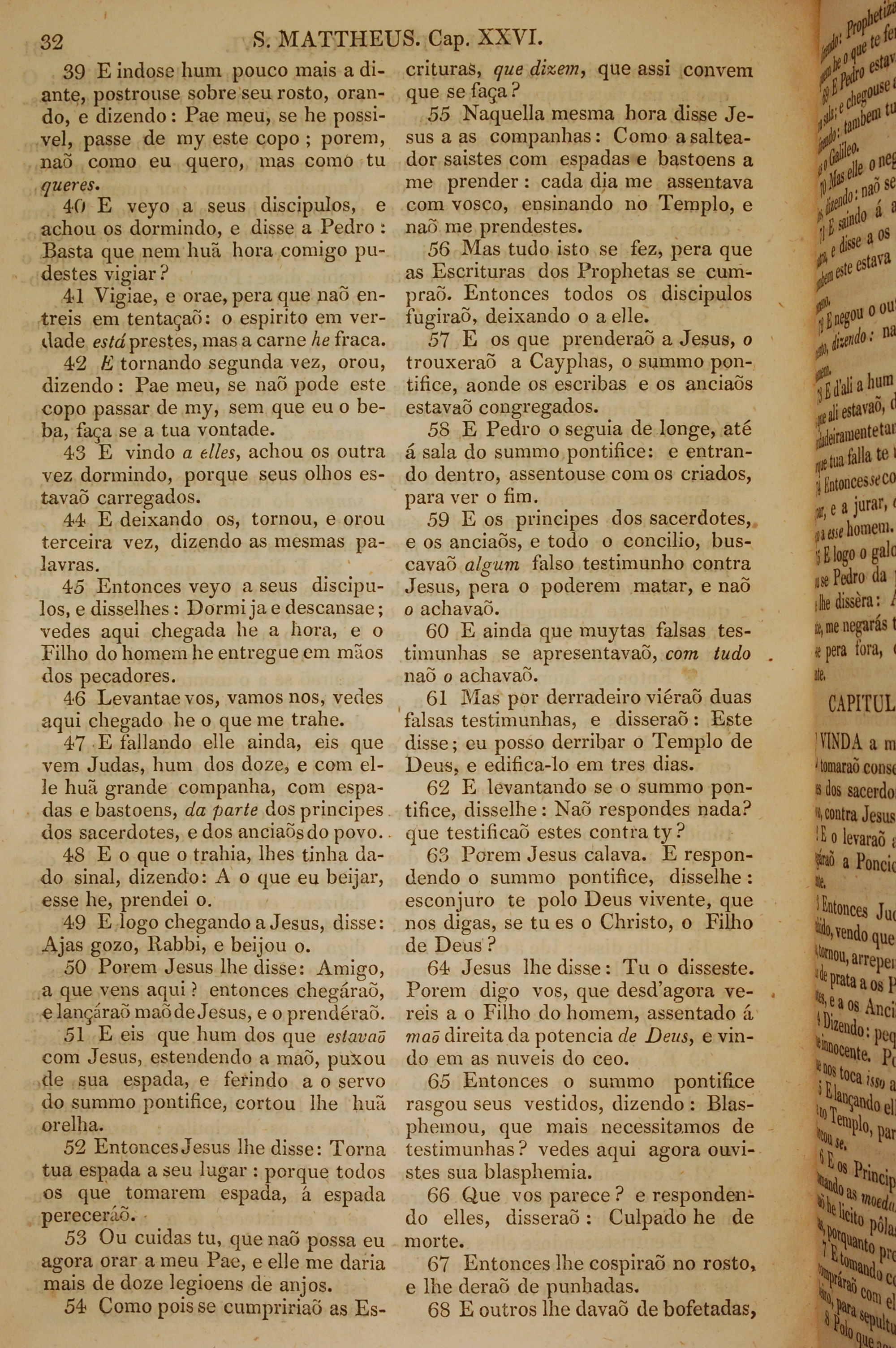 1819年葡萄牙語新約全書 馬太福音 26 章 39 節到 26 章 68 節