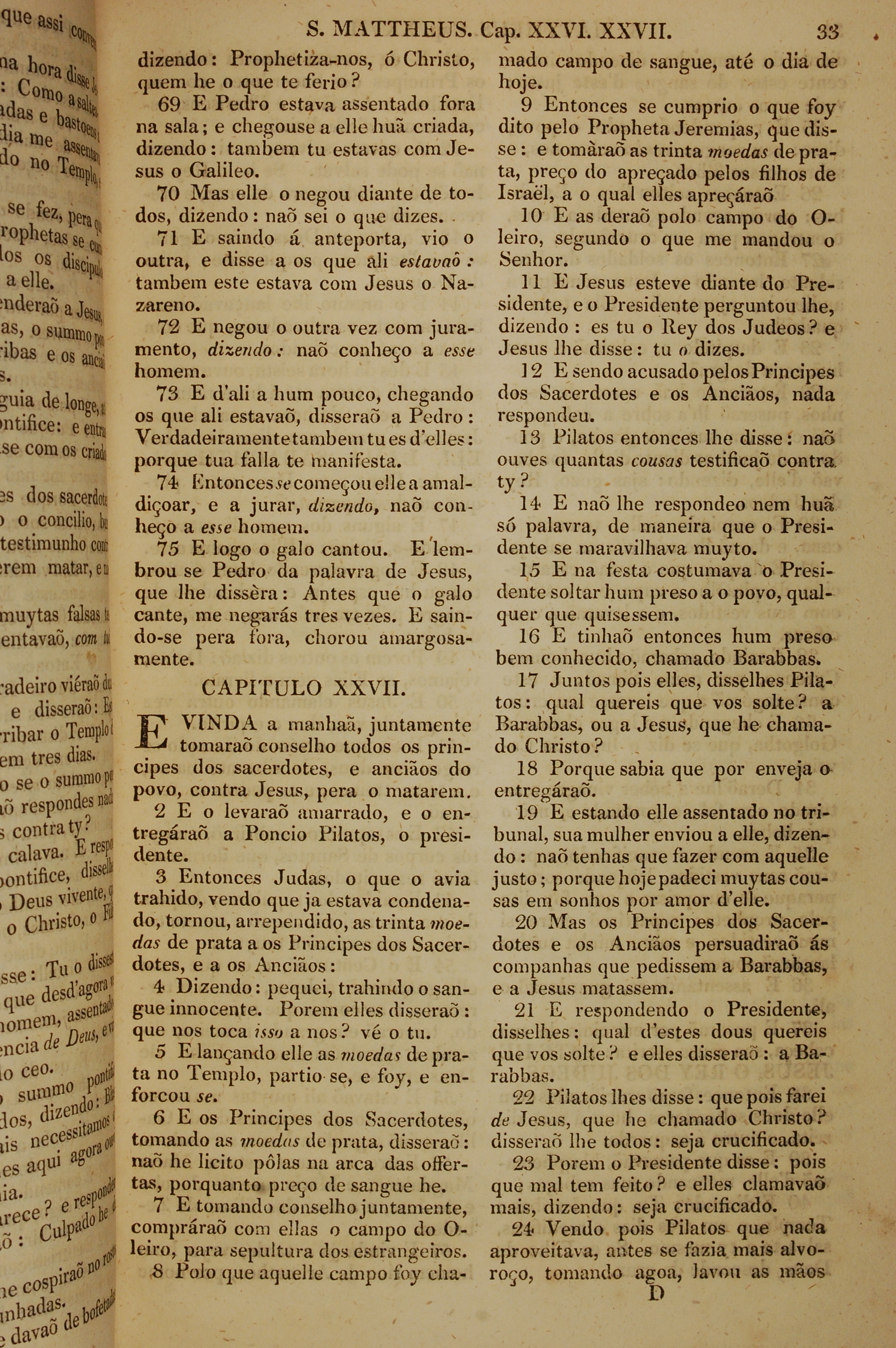 1819年葡萄牙語新約全書 馬太福音 26 章 69 節到 27 章 24 節