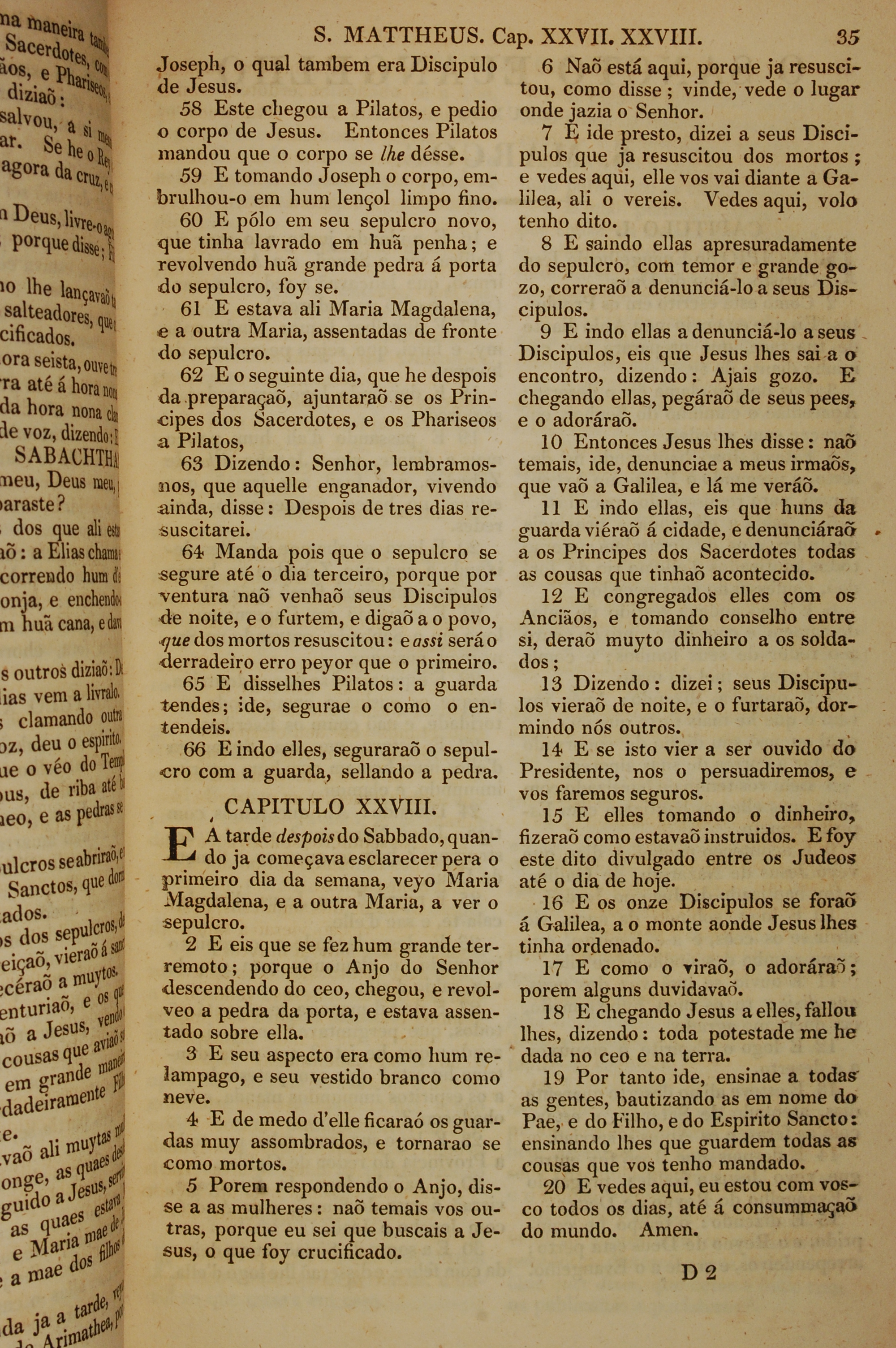 1819年葡萄牙語新約全書 馬太福音 27 章 58 節到 28 章 20 節