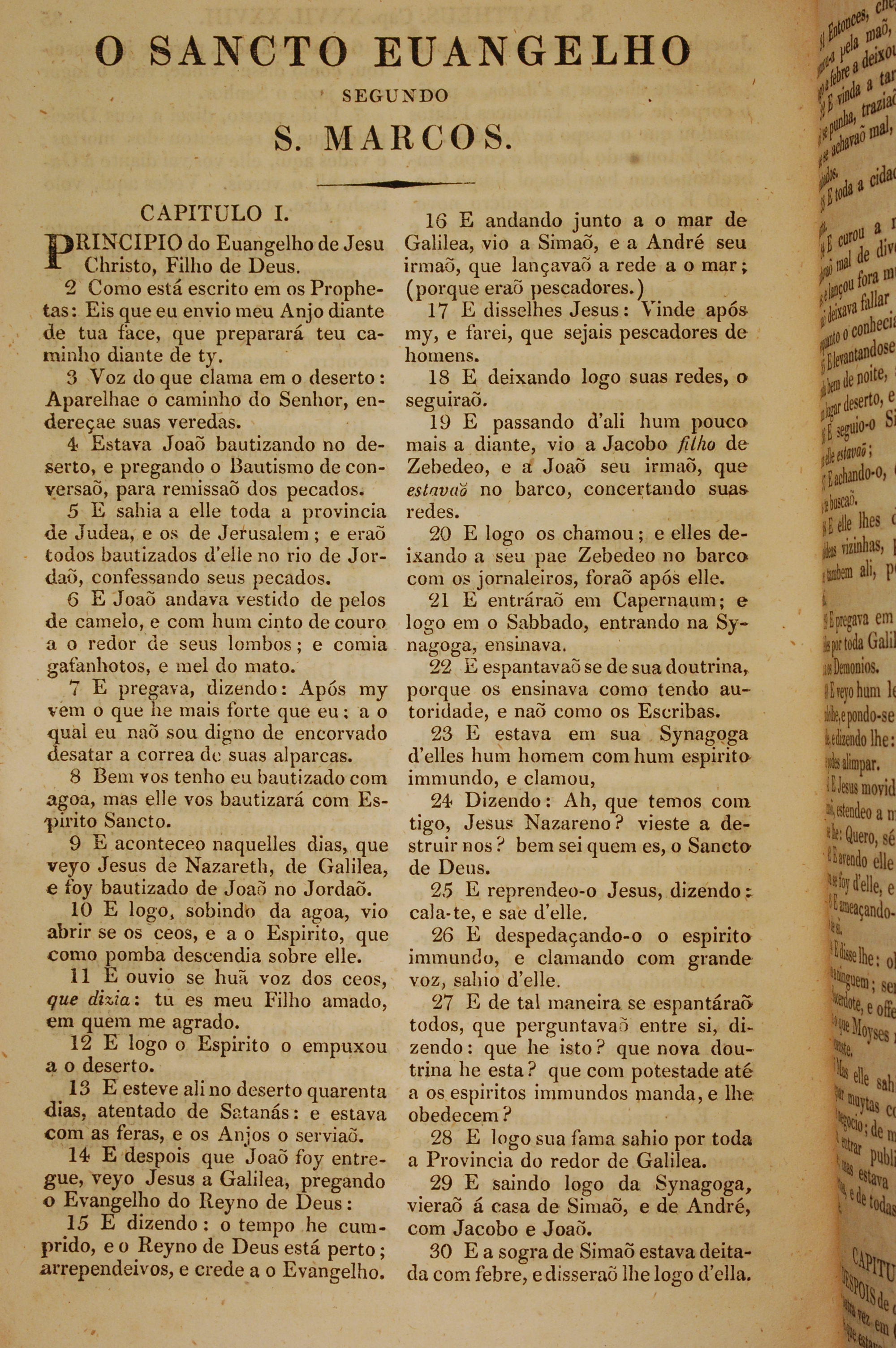 1819年葡萄牙語新約全書 馬可福音 1 章 1 節到 1 章 30 節