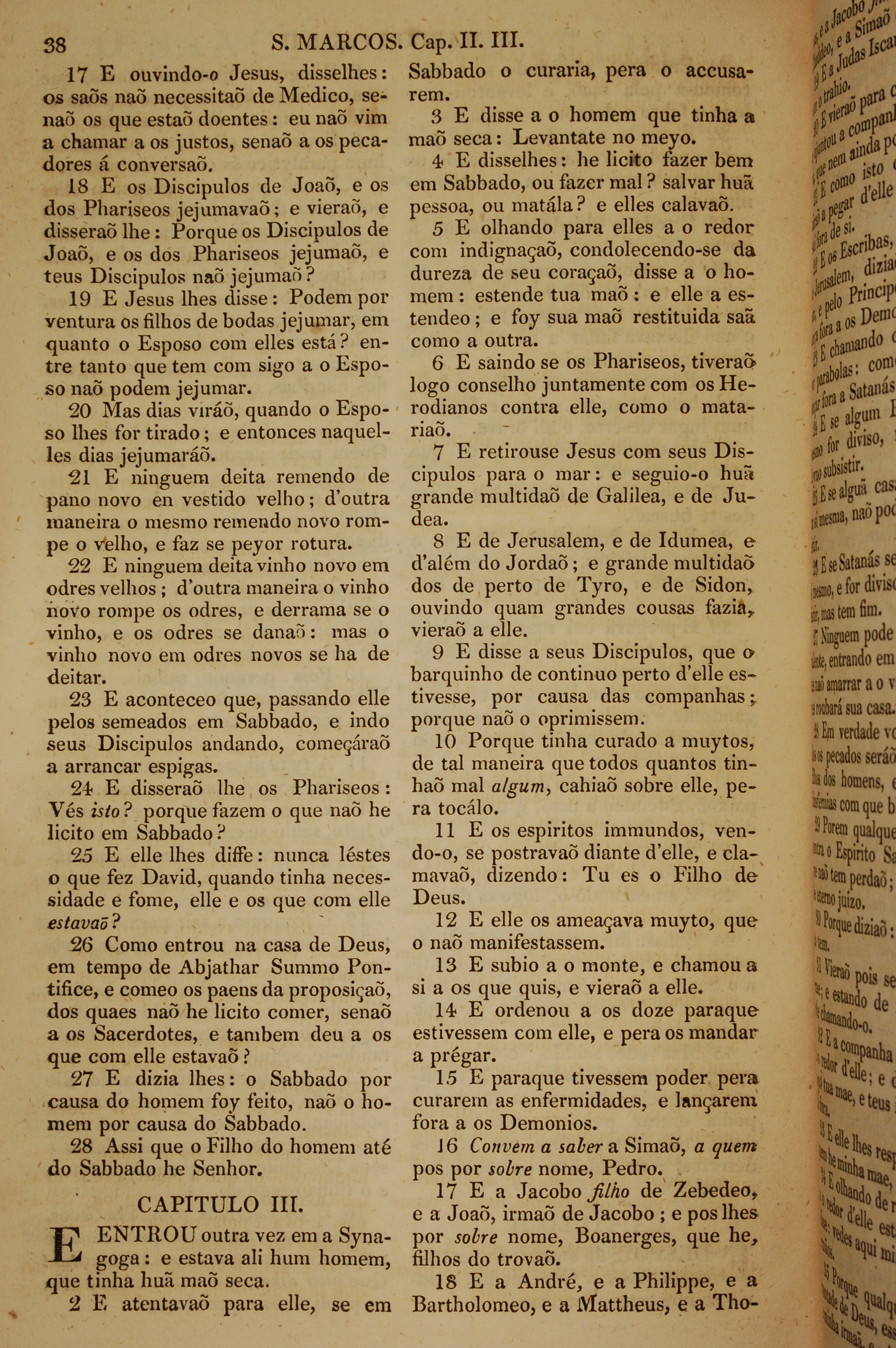 1819年葡萄牙語新約全書 馬可福音 2 章 17 節到 3 章 18 節