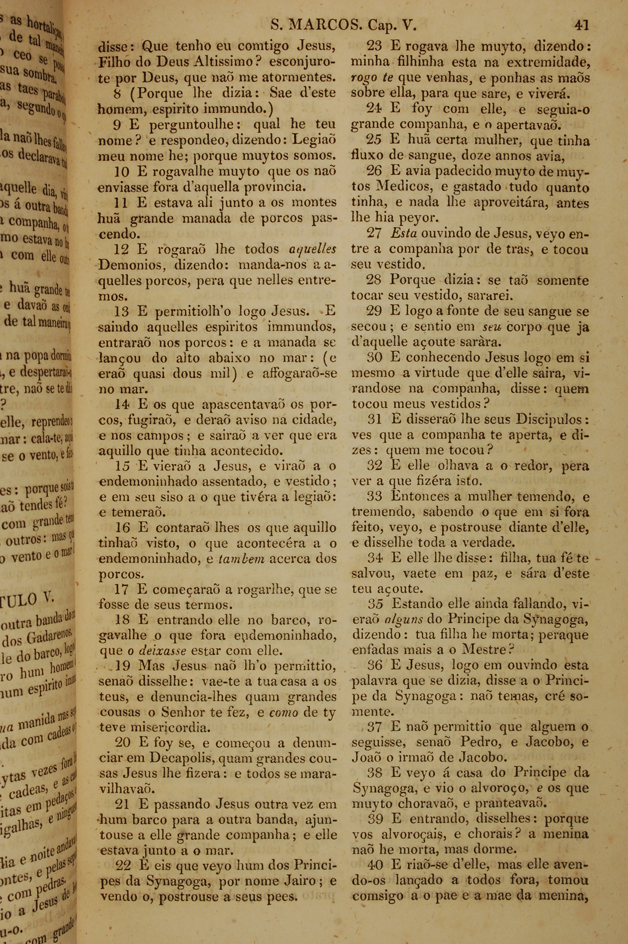 1819年葡萄牙語新約全書 馬可福音 5 章 8 節到 5 章 40 節