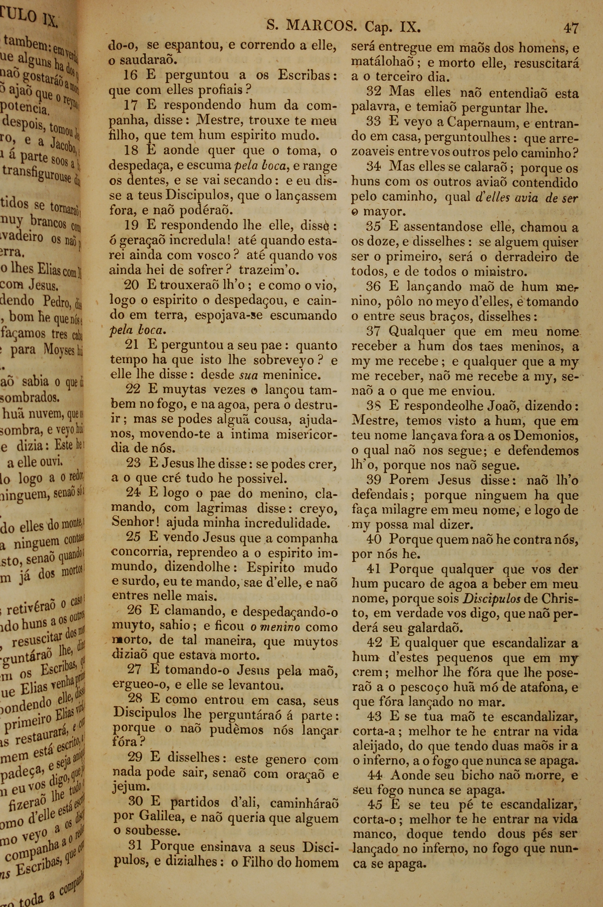 1819年葡萄牙語新約全書 馬可福音 9 章 16 節到 9 章 45 節