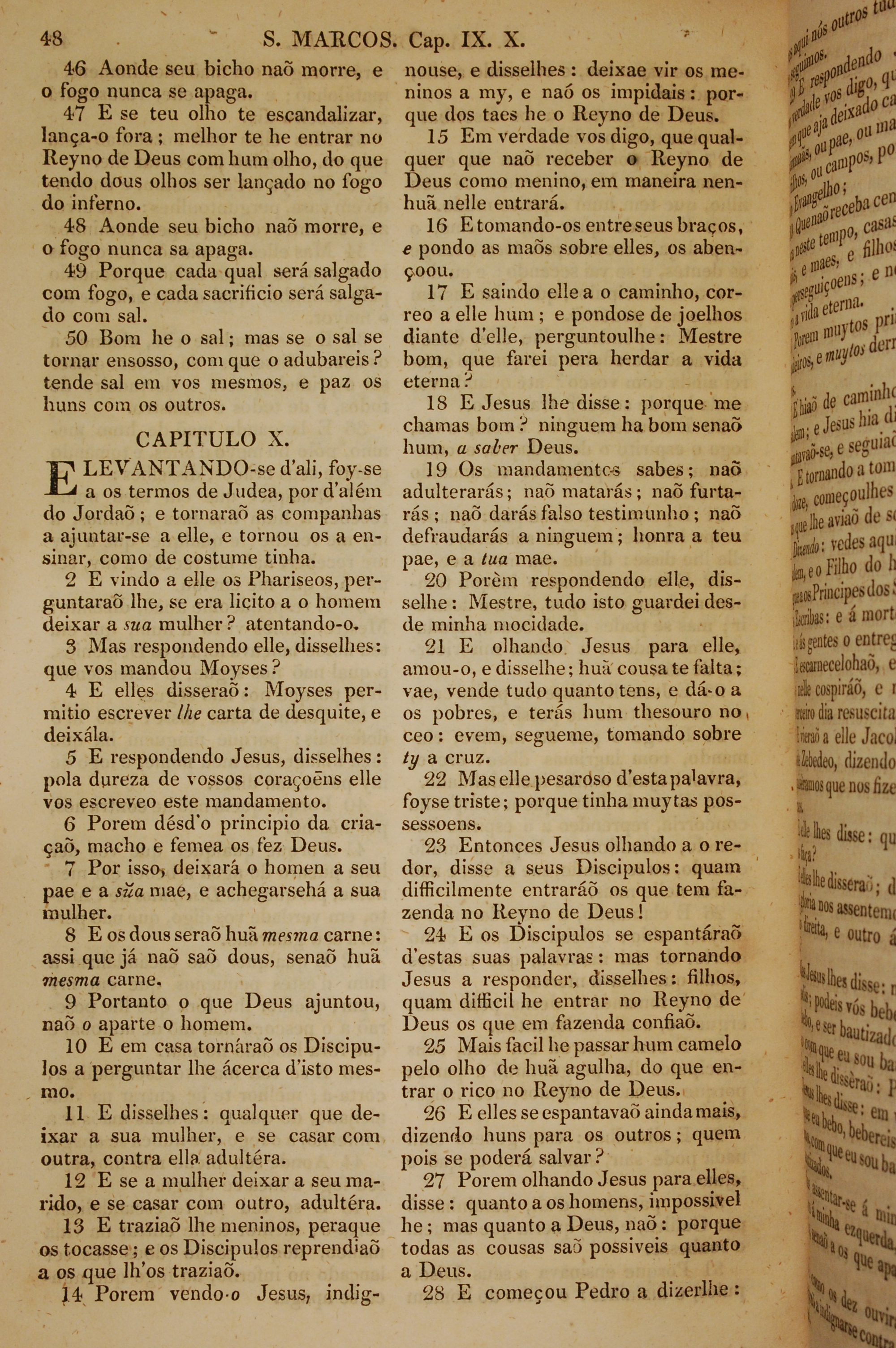 1819年葡萄牙語新約全書 馬可福音 9 章 46 節到 10 章 28 節