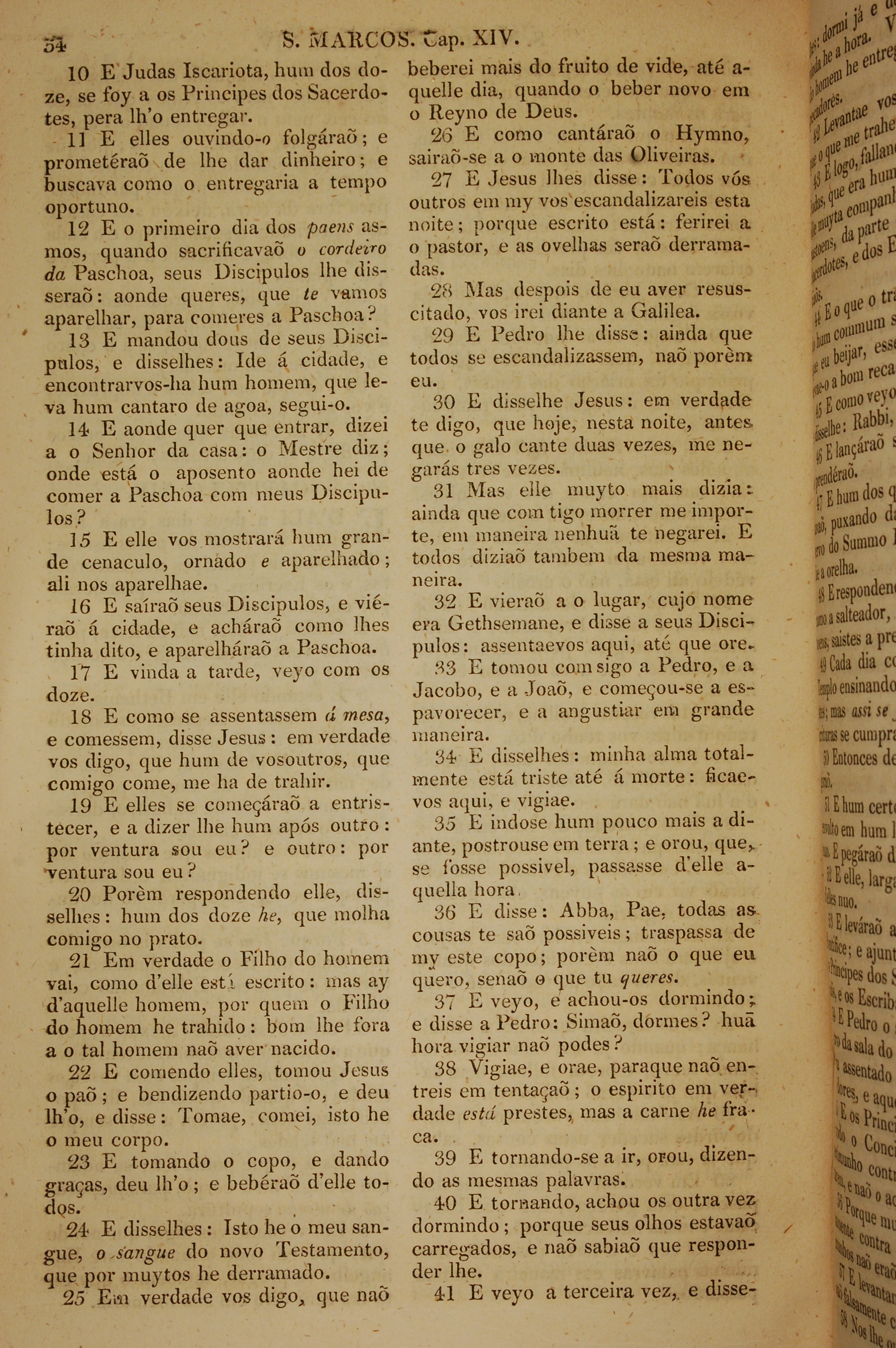 1819年葡萄牙語新約全書 馬可福音 14 章 10 節到 14 章 41 節