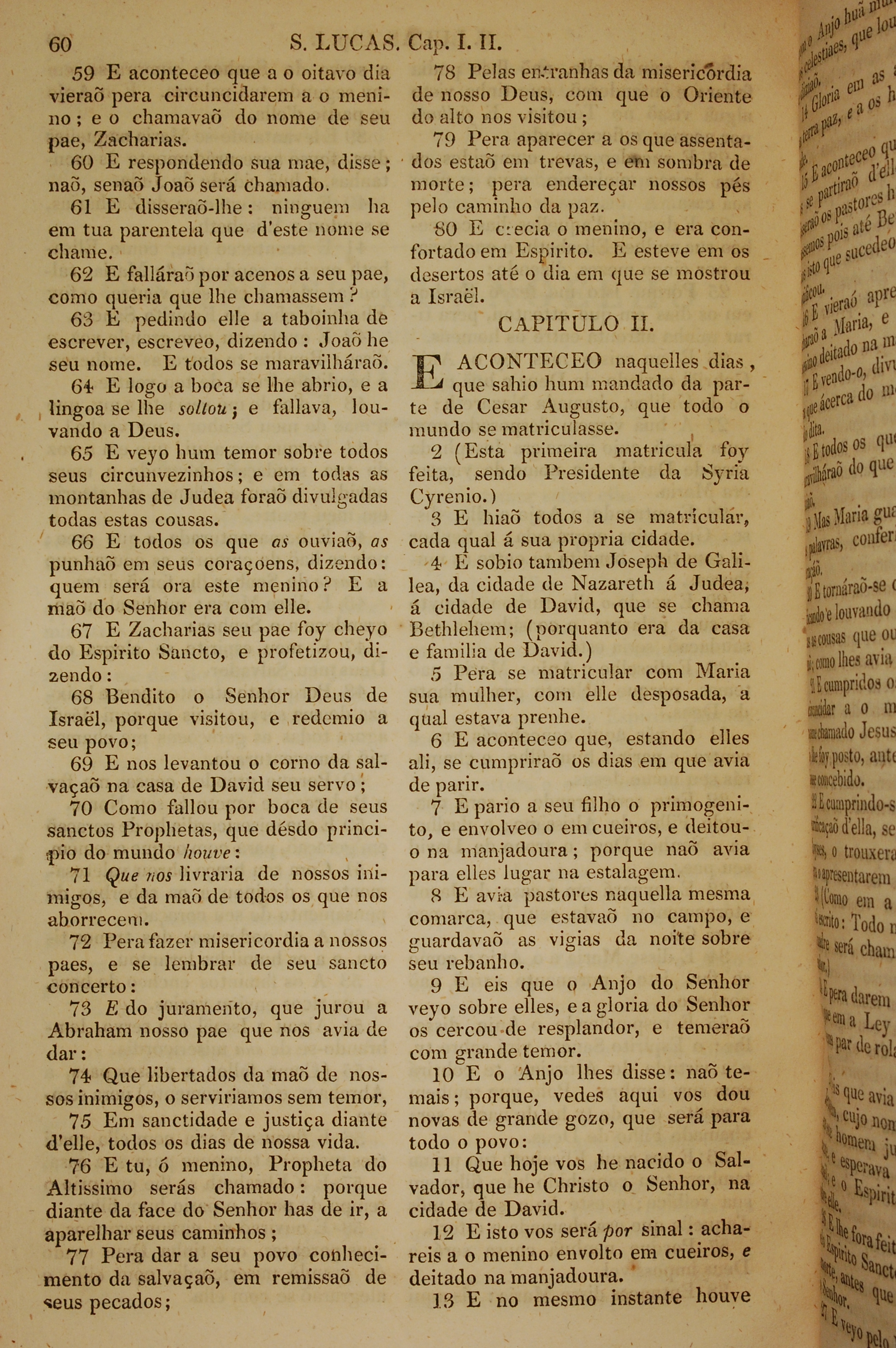 1819年葡萄牙語新約全書 路加福音 1 章 59 節到 2 章 13 節