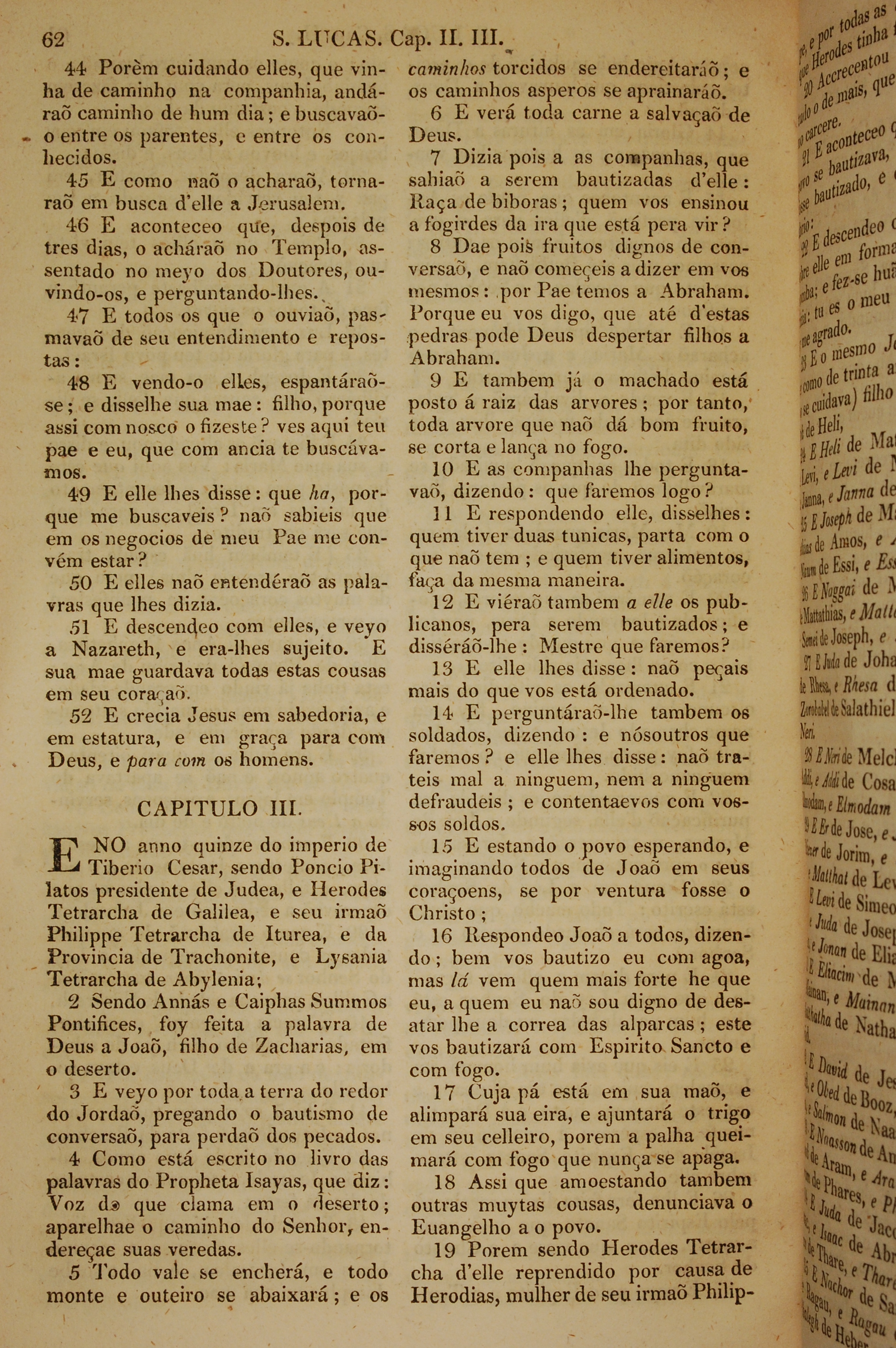 1819年葡萄牙語新約全書 路加福音 2 章 44 節到 3 章 19 節