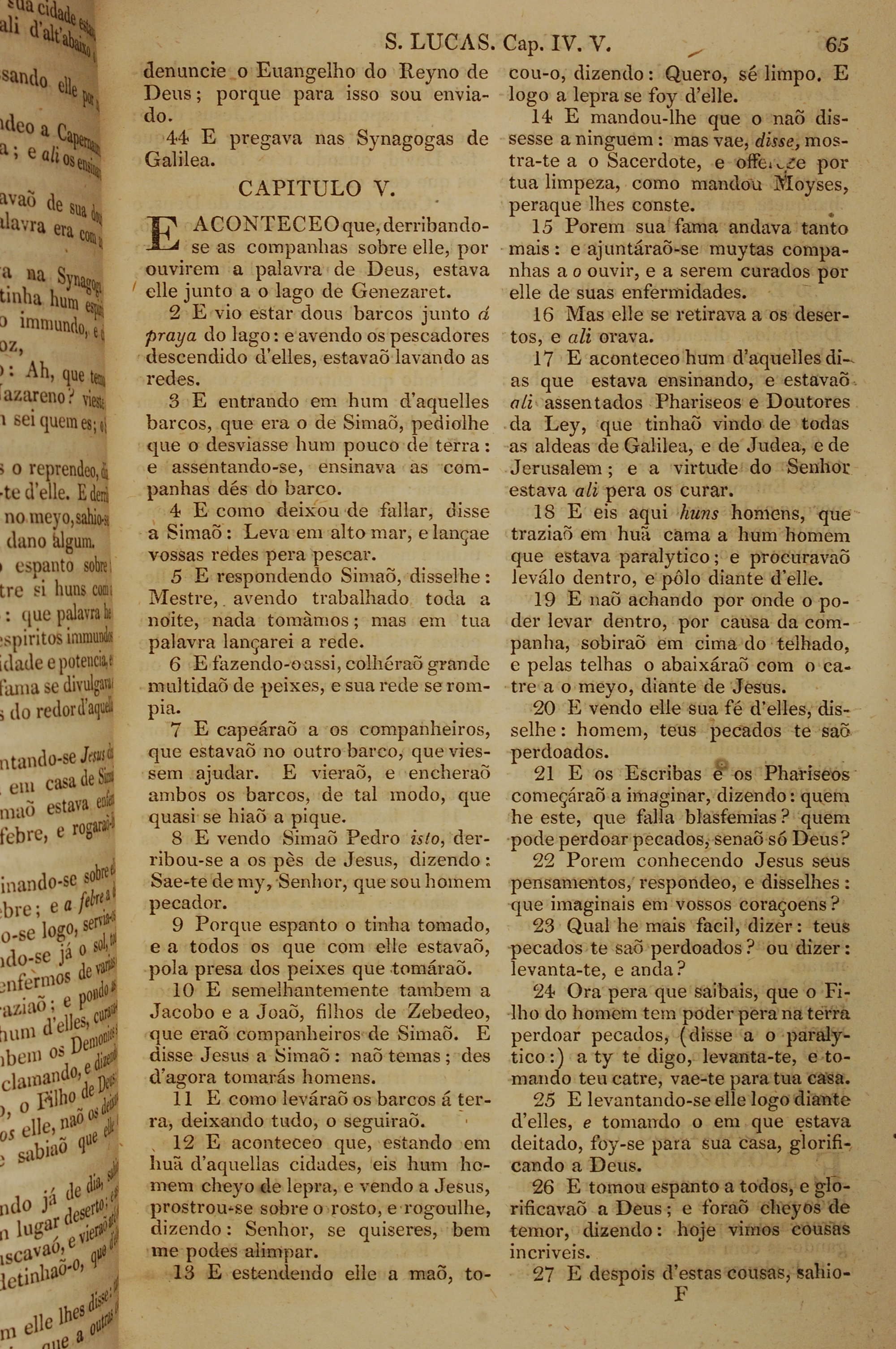 1819年葡萄牙語新約全書 路加福音 4 章 44 節到 5 章 27 節