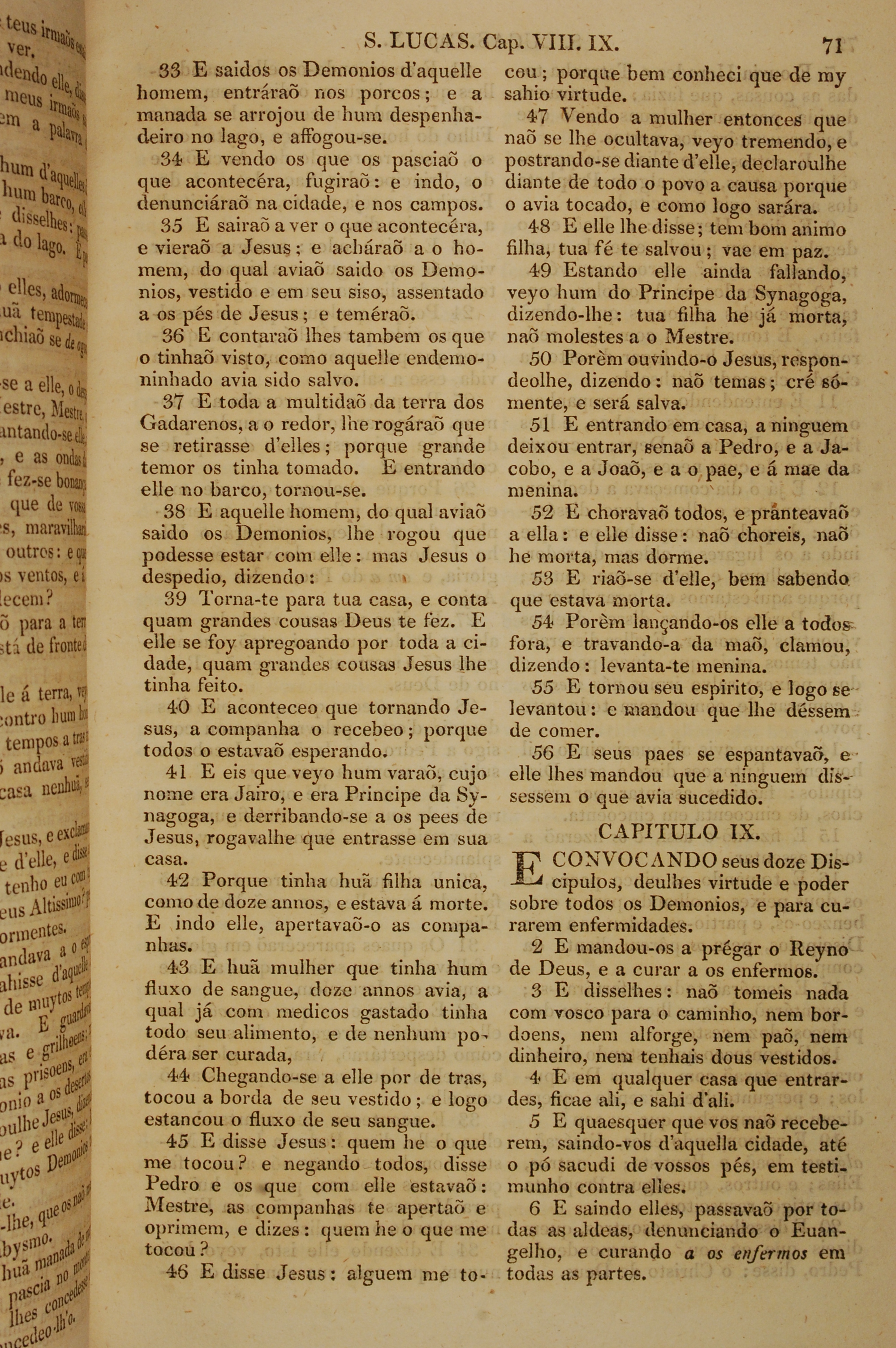 1819年葡萄牙語新約全書 路加福音 8 章 33 節到 9 章 6 節