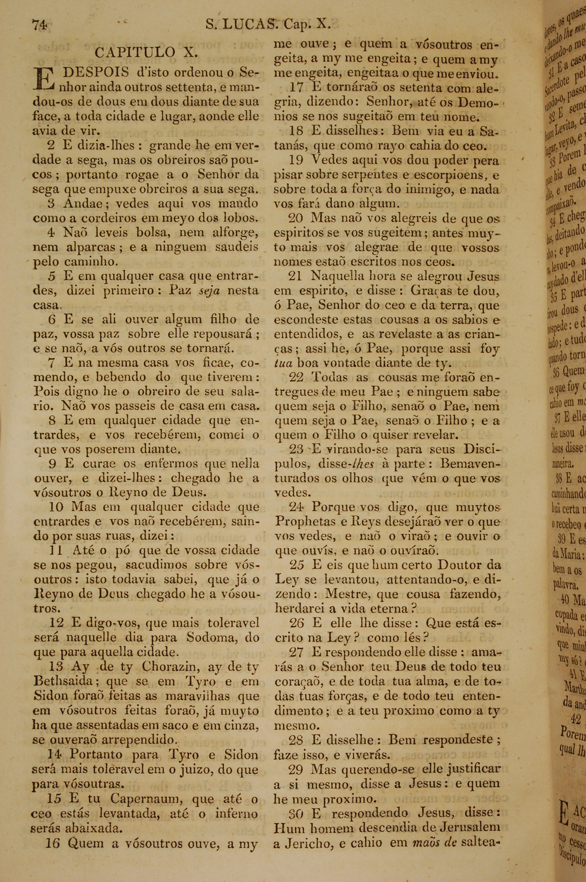1819年葡萄牙語新約全書 路加福音 10 章 1 節到 10 章 30 節