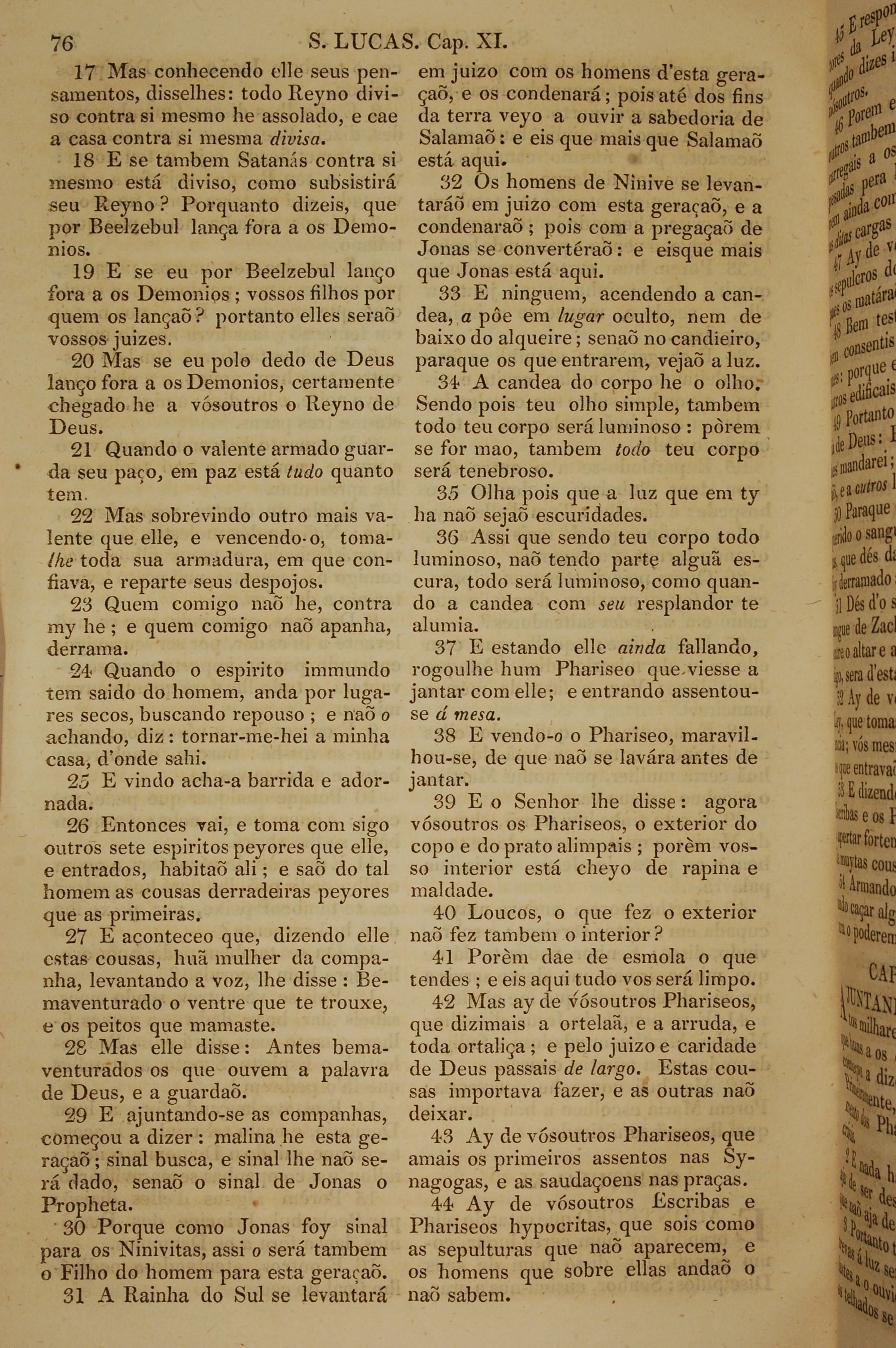 1819年葡萄牙語新約全書 路加福音 11 章 17 節到 11 章 44 節