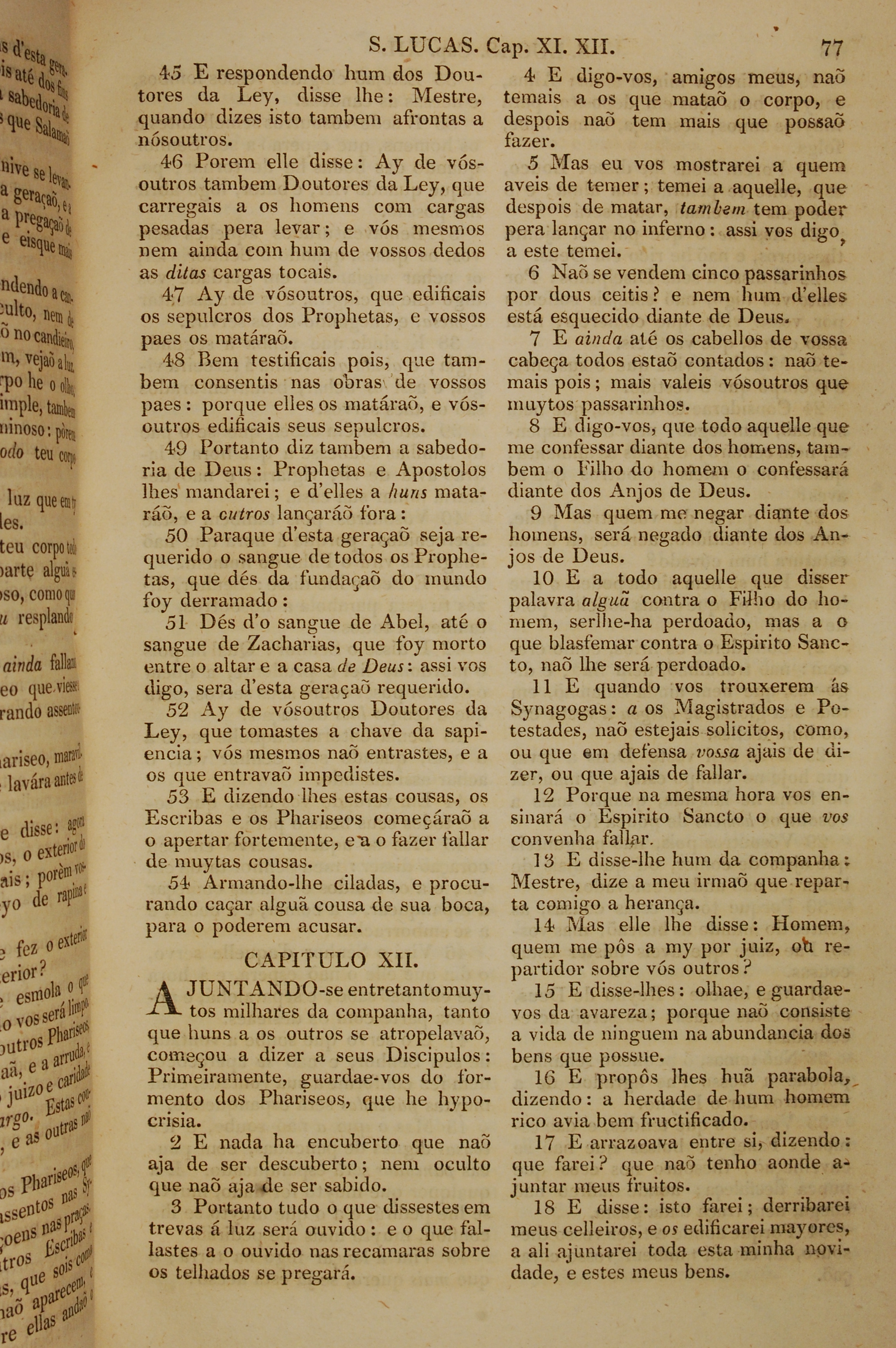 1819年葡萄牙語新約全書 路加福音 11 章 45 節到 12 章 18 節