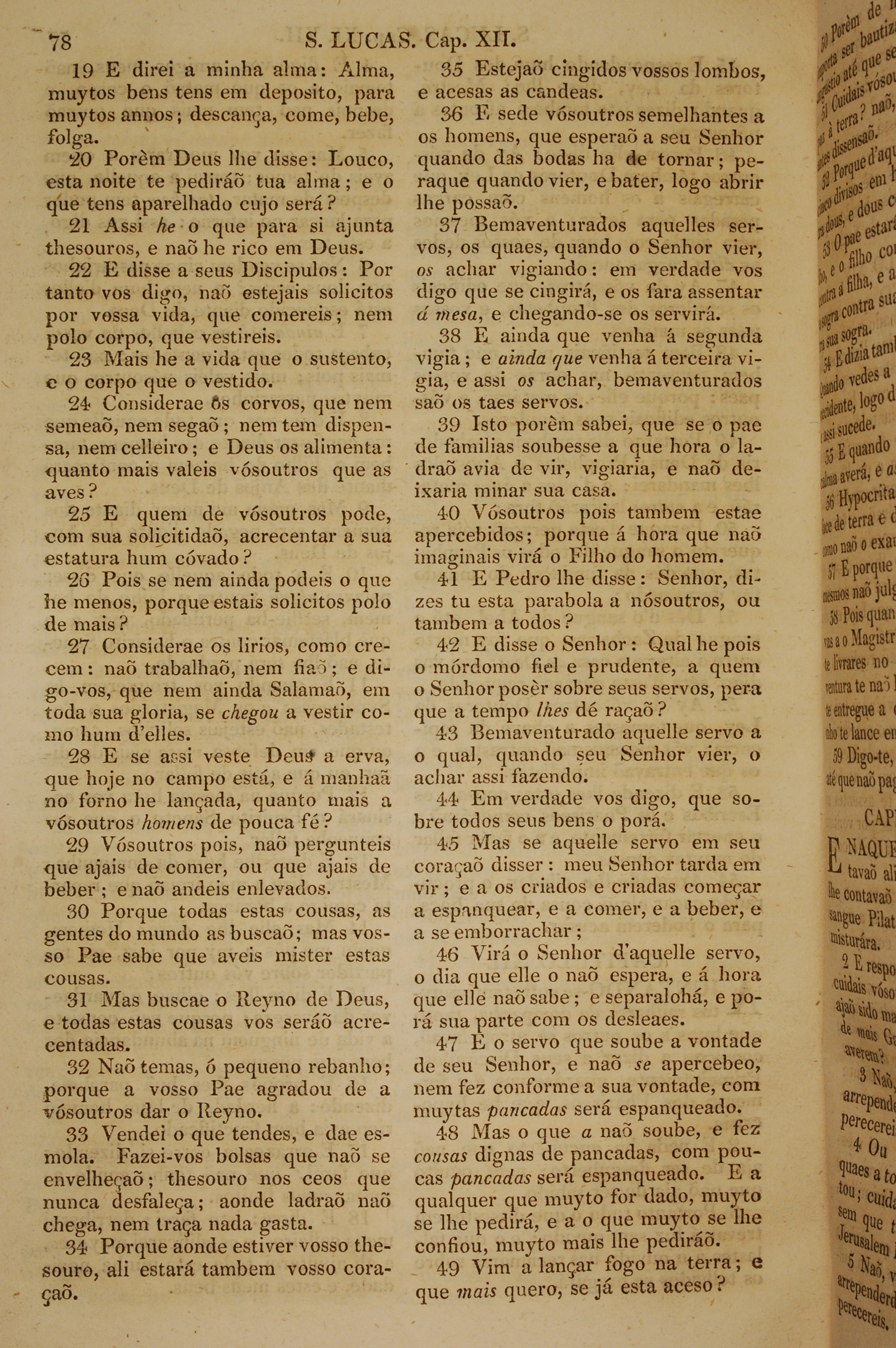 1819年葡萄牙語新約全書 路加福音 12 章 19 節到 12 章 49 節