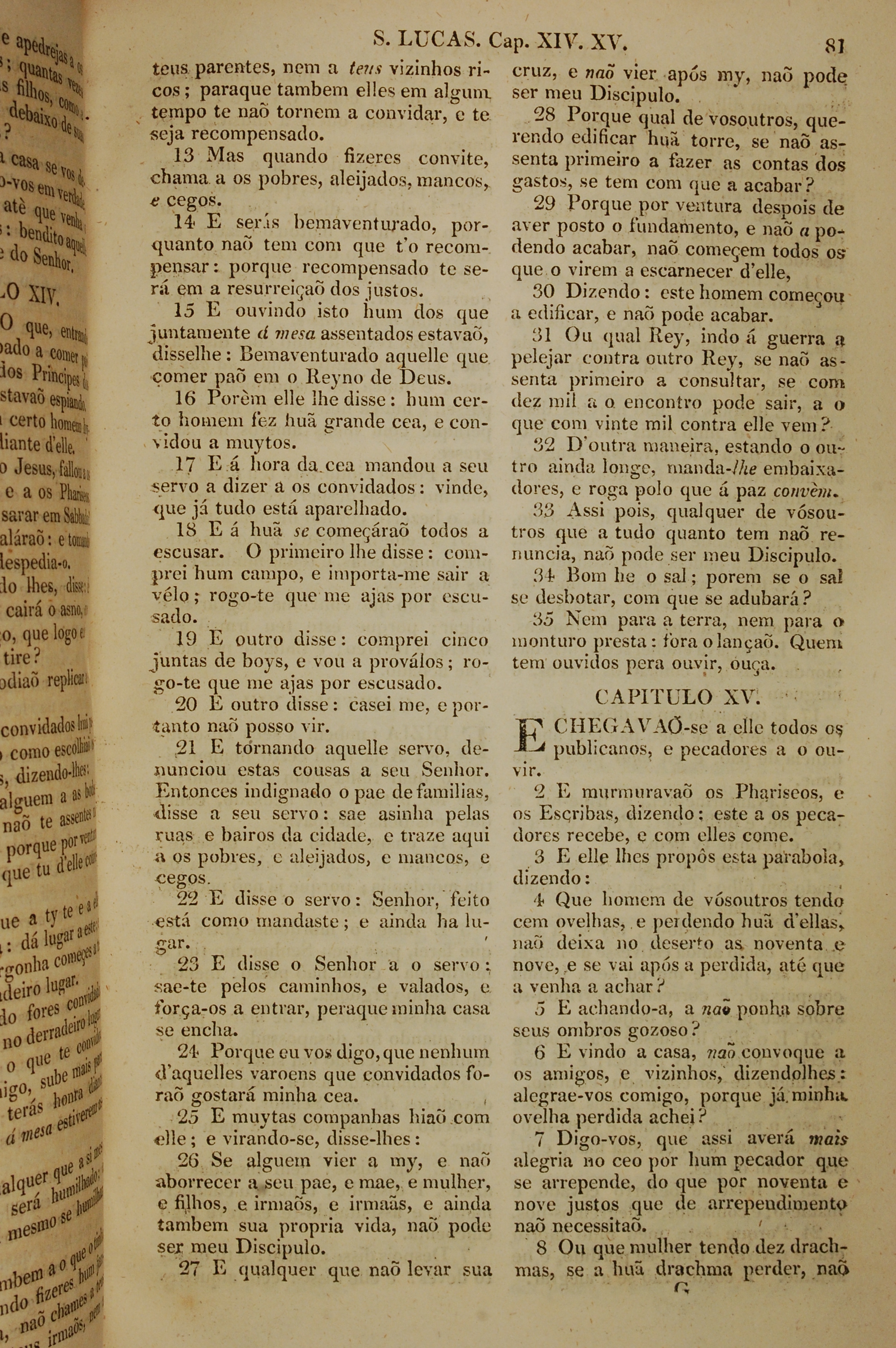 1819年葡萄牙語新約全書 路加福音 14 章 13 節到 15 章 8 節