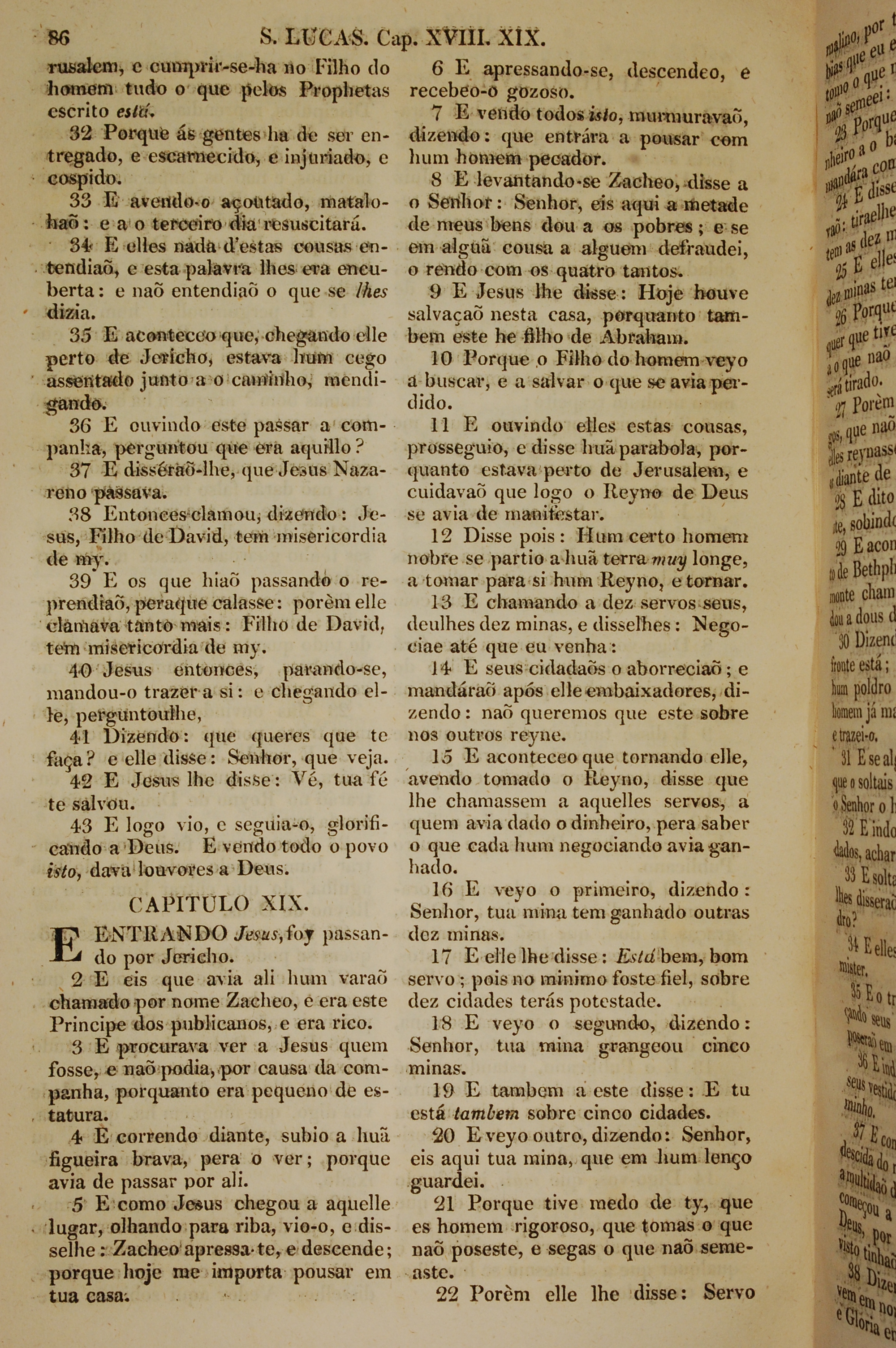 1819年葡萄牙語新約全書 路加福音 18 章 32 節到 19 章 22 節