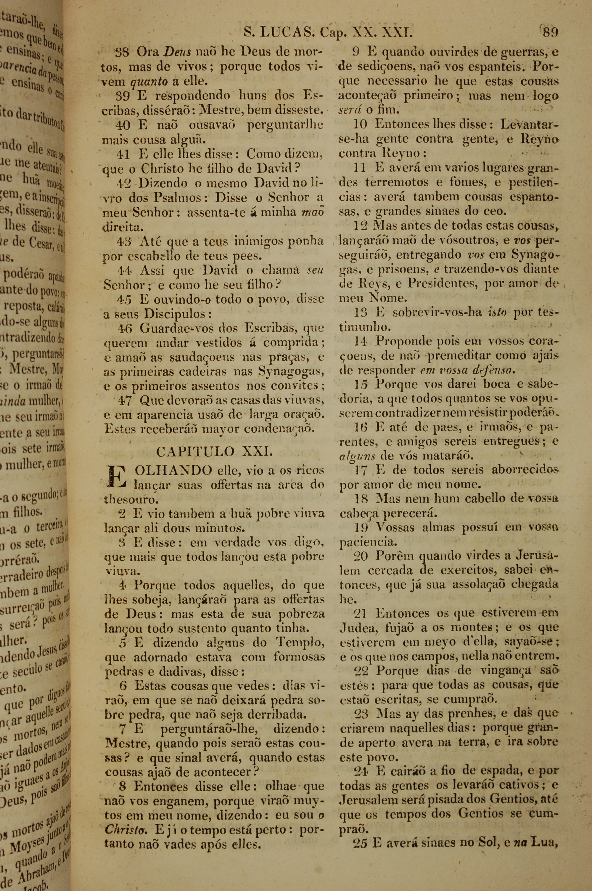 1819年葡萄牙語新約全書 路加福音 20 章 38 節到 21 章 25 節