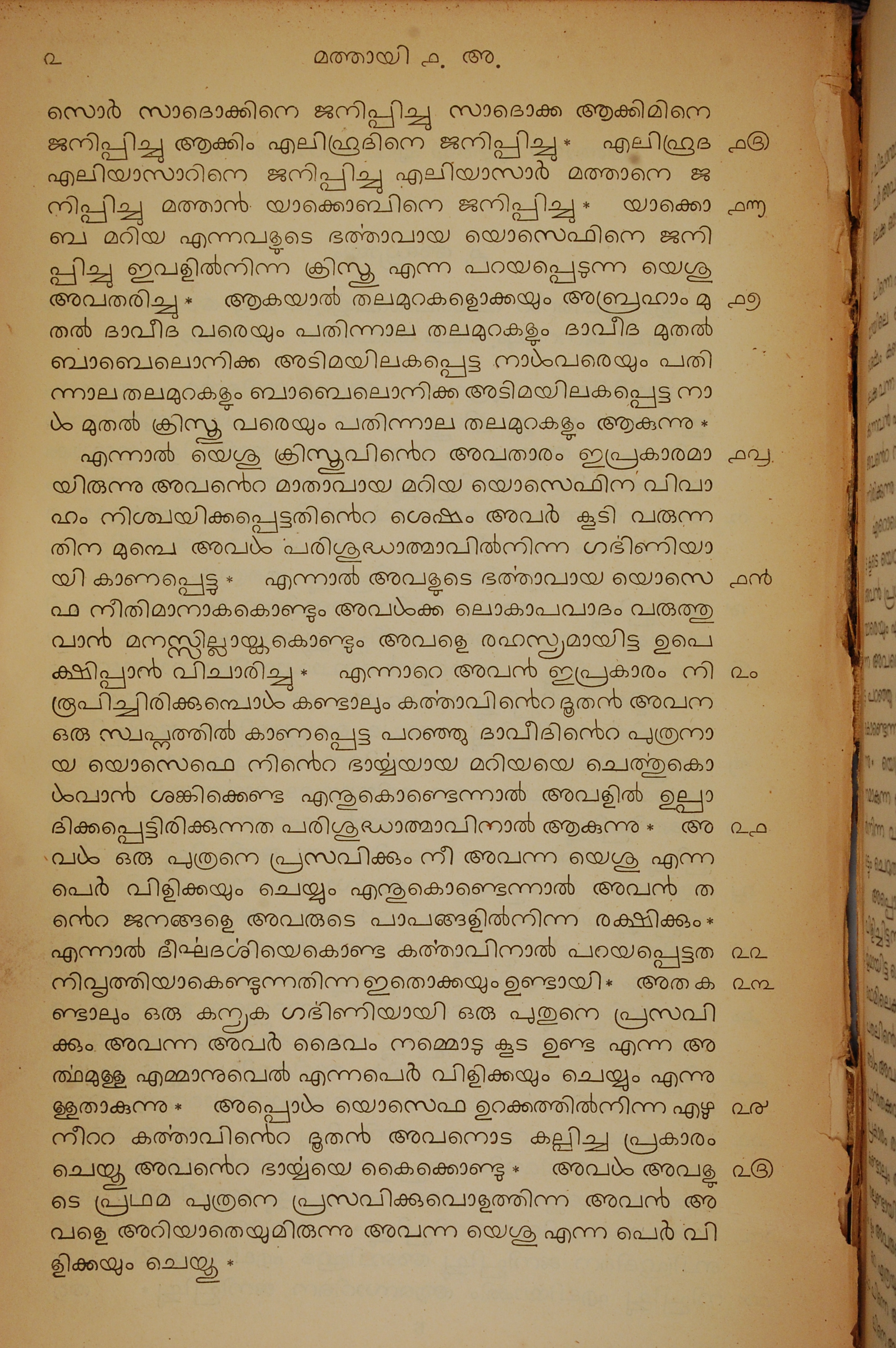 1834年馬來文聖經四福音與使徒行傳 馬太福音 1 章 15 節到 1 章 25 節
