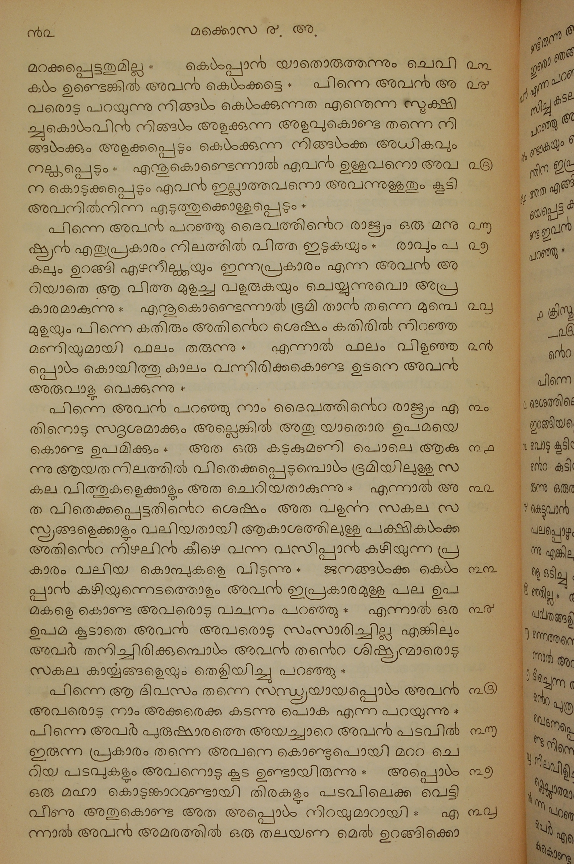 1834年馬來文聖經四福音與使徒行傳 馬可福音 4 章 23 節到 4 章 38 節