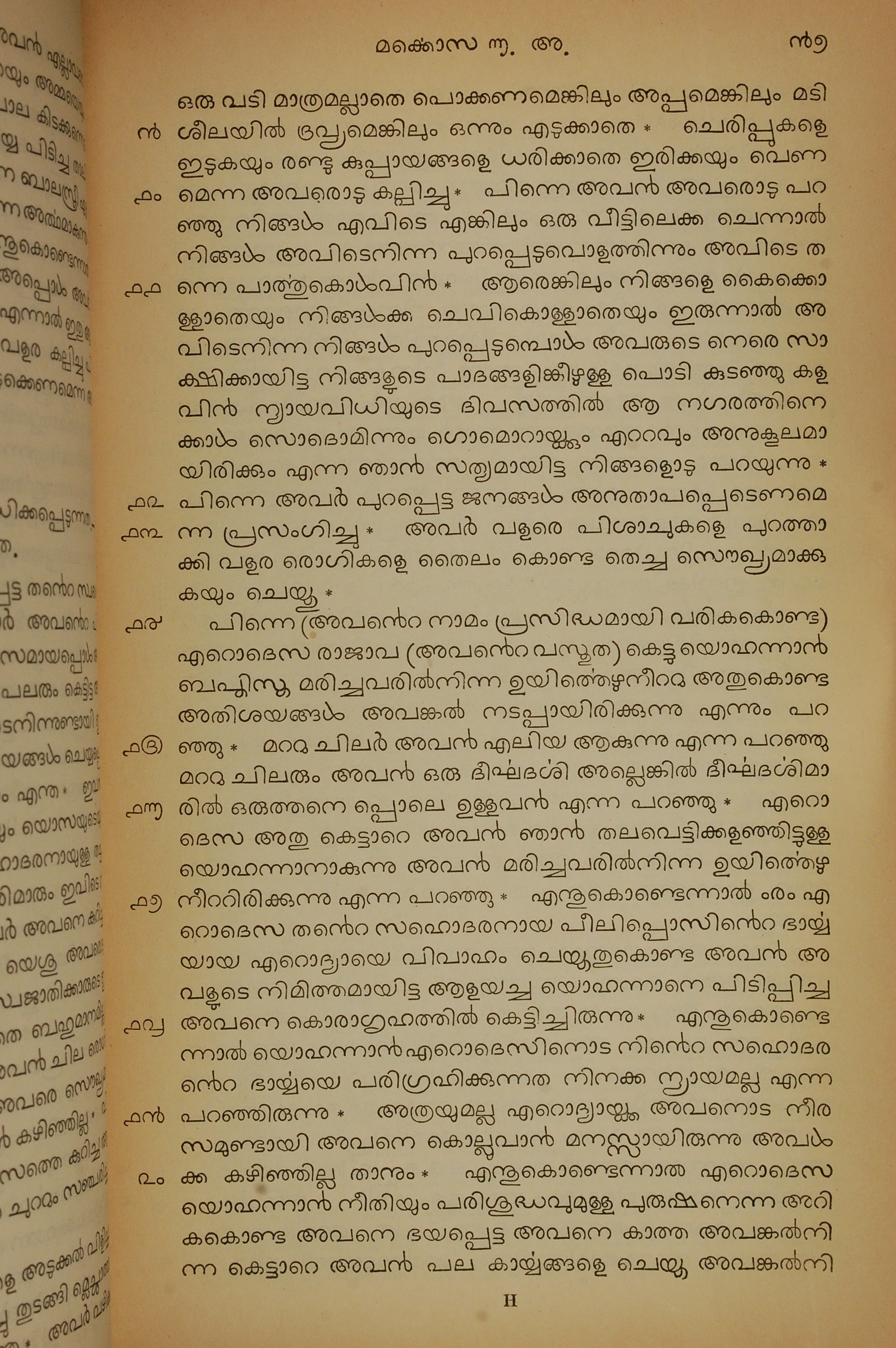 1834年馬來文聖經四福音與使徒行傳 馬可福音 6 章 9 節到 6 章 20 節