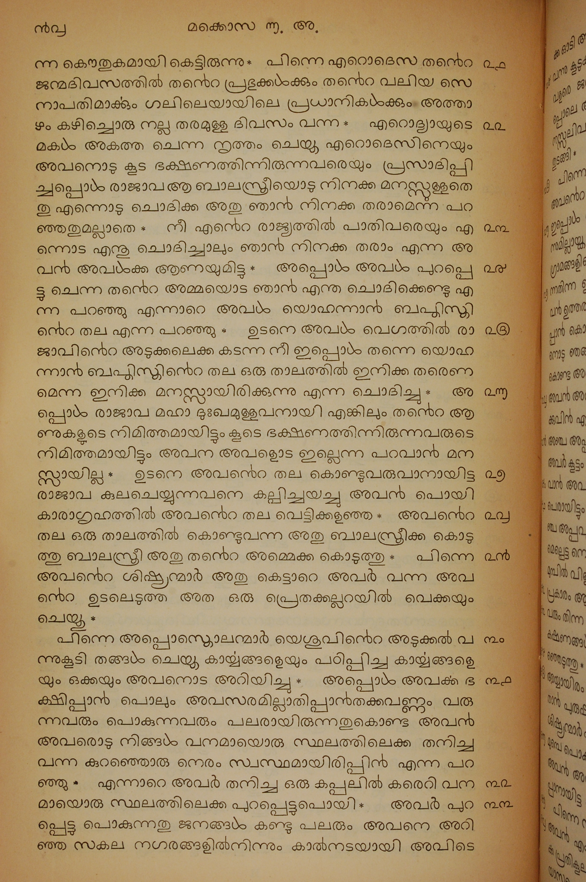 1834年馬來文聖經四福音與使徒行傳 馬可福音 6 章 21 節到 6 章 33 節