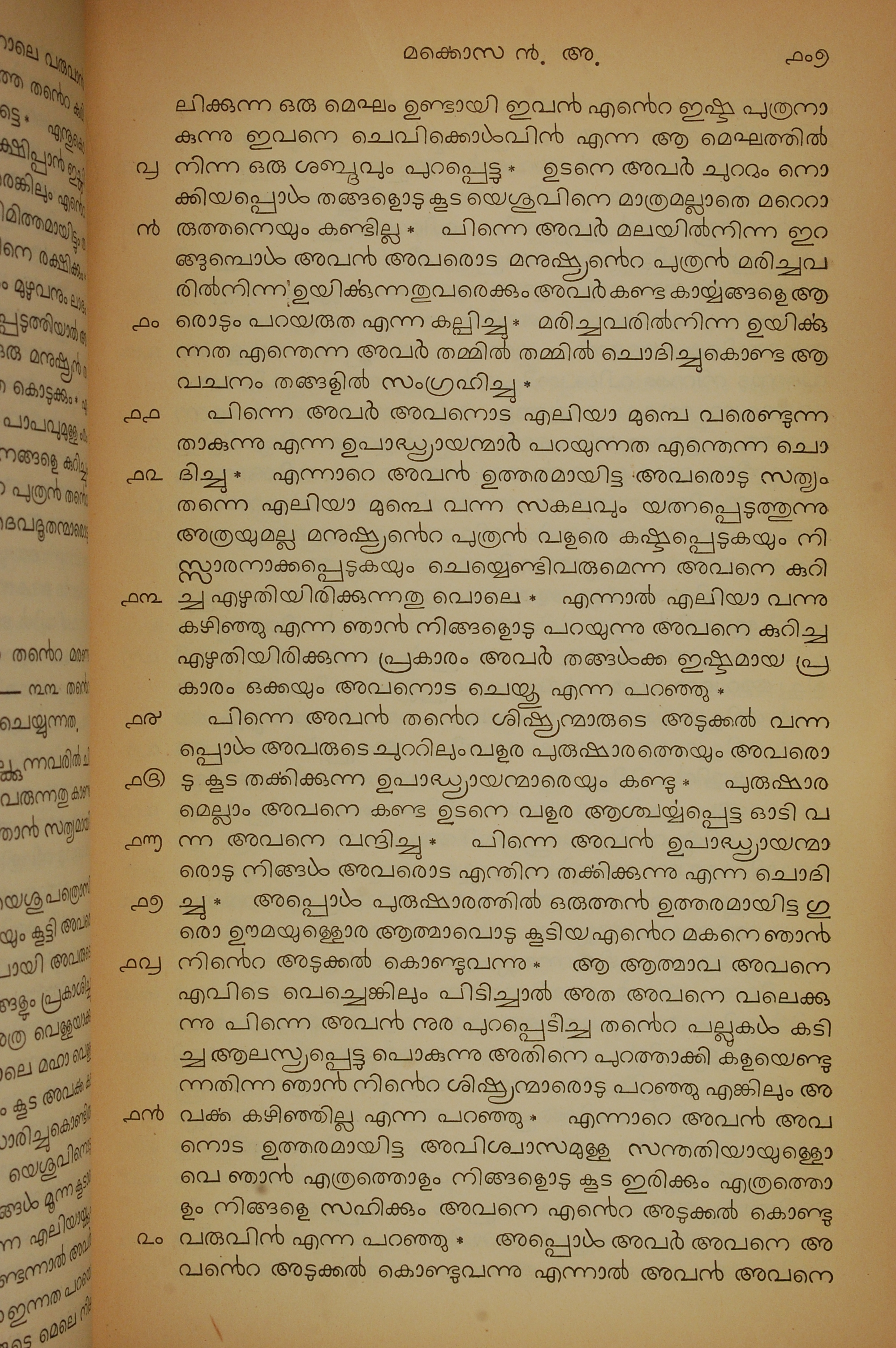1834年馬來文聖經四福音與使徒行傳 馬可福音 9 章 8 節到 9 章 20 節
