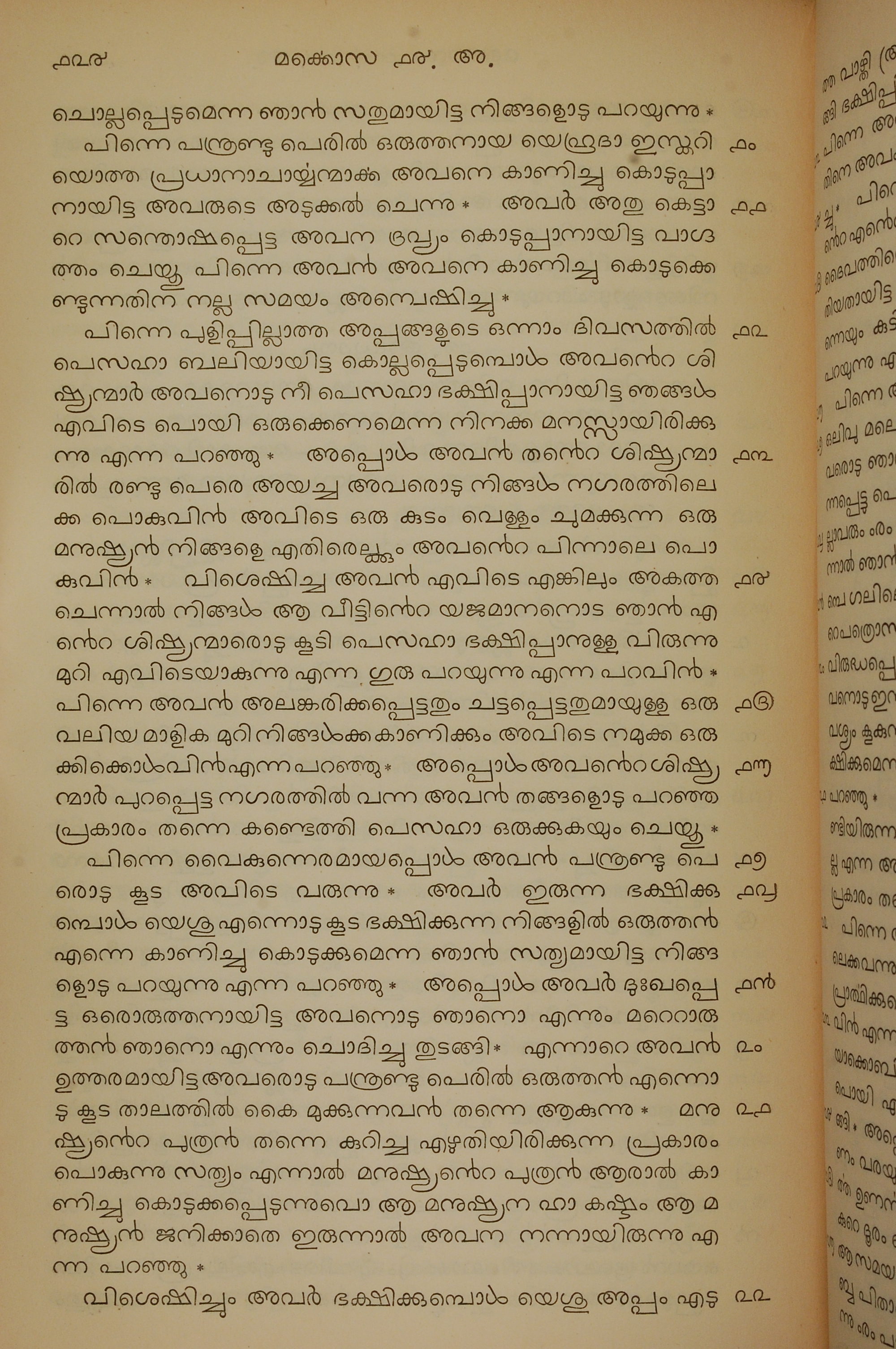 1834年馬來文聖經四福音與使徒行傳 馬可福音 14 章 10 節到 14 章 22 節