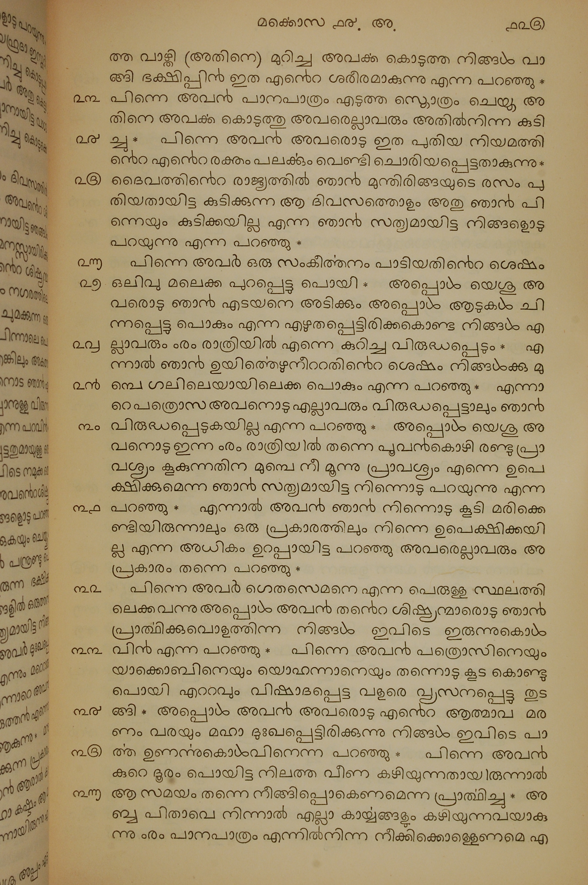 1834年馬來文聖經四福音與使徒行傳 馬可福音 14 章 23 節到 14 章 36 節