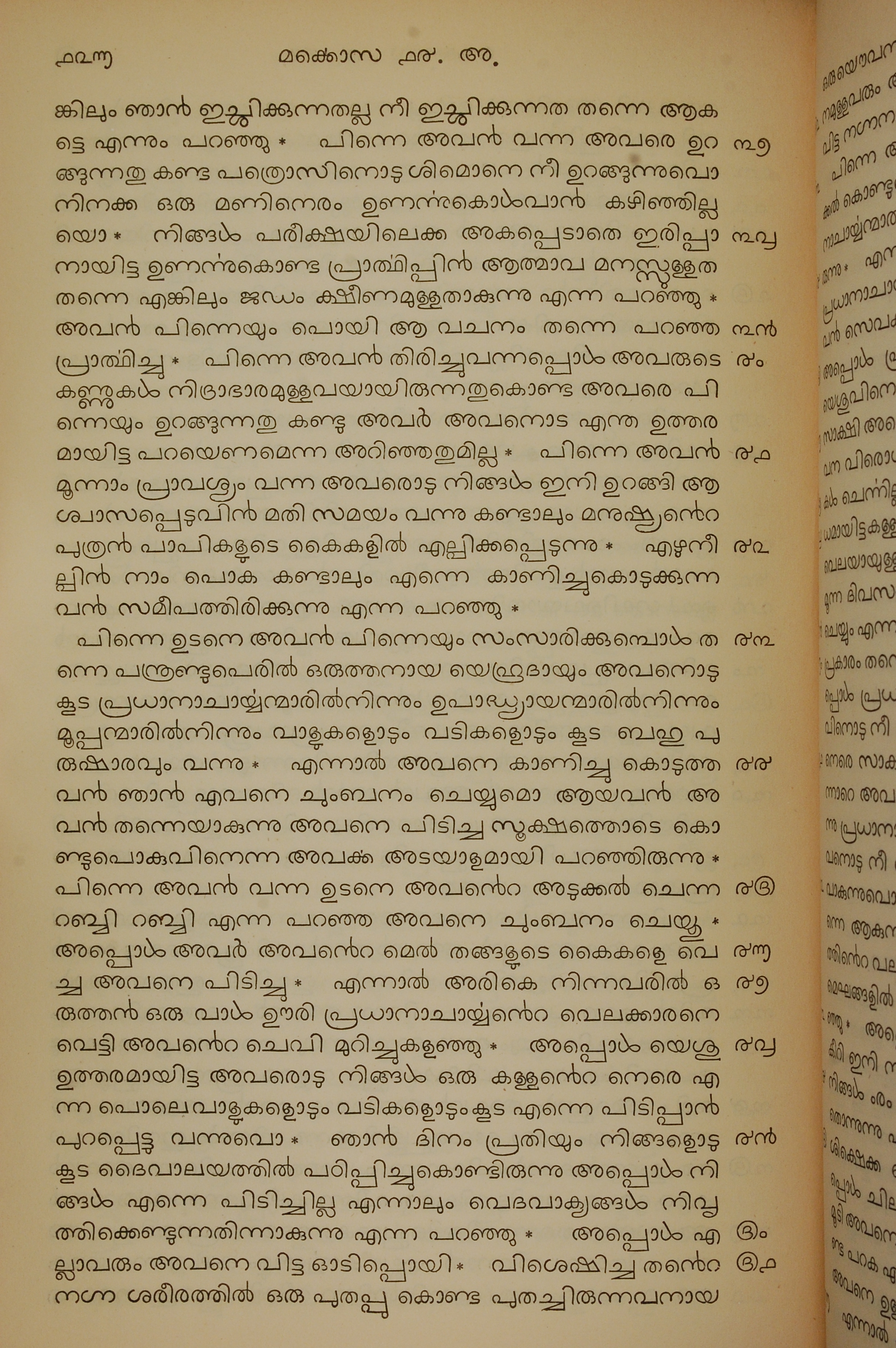 1834年馬來文聖經四福音與使徒行傳 馬可福音 14 章 37 節到 14 章 51 節