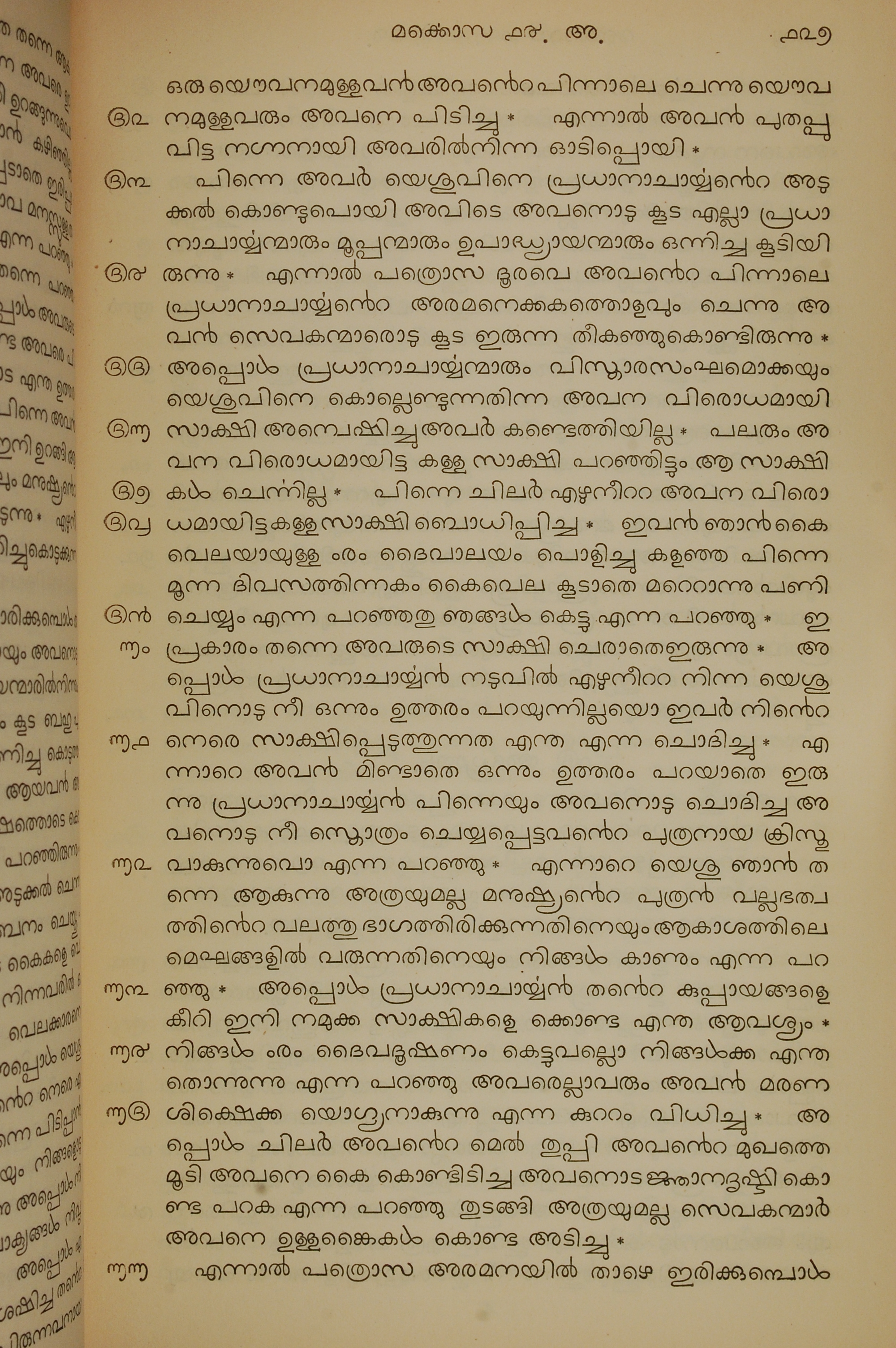1834年馬來文聖經四福音與使徒行傳 馬可福音 14 章 52 節到 14 章 66 節
