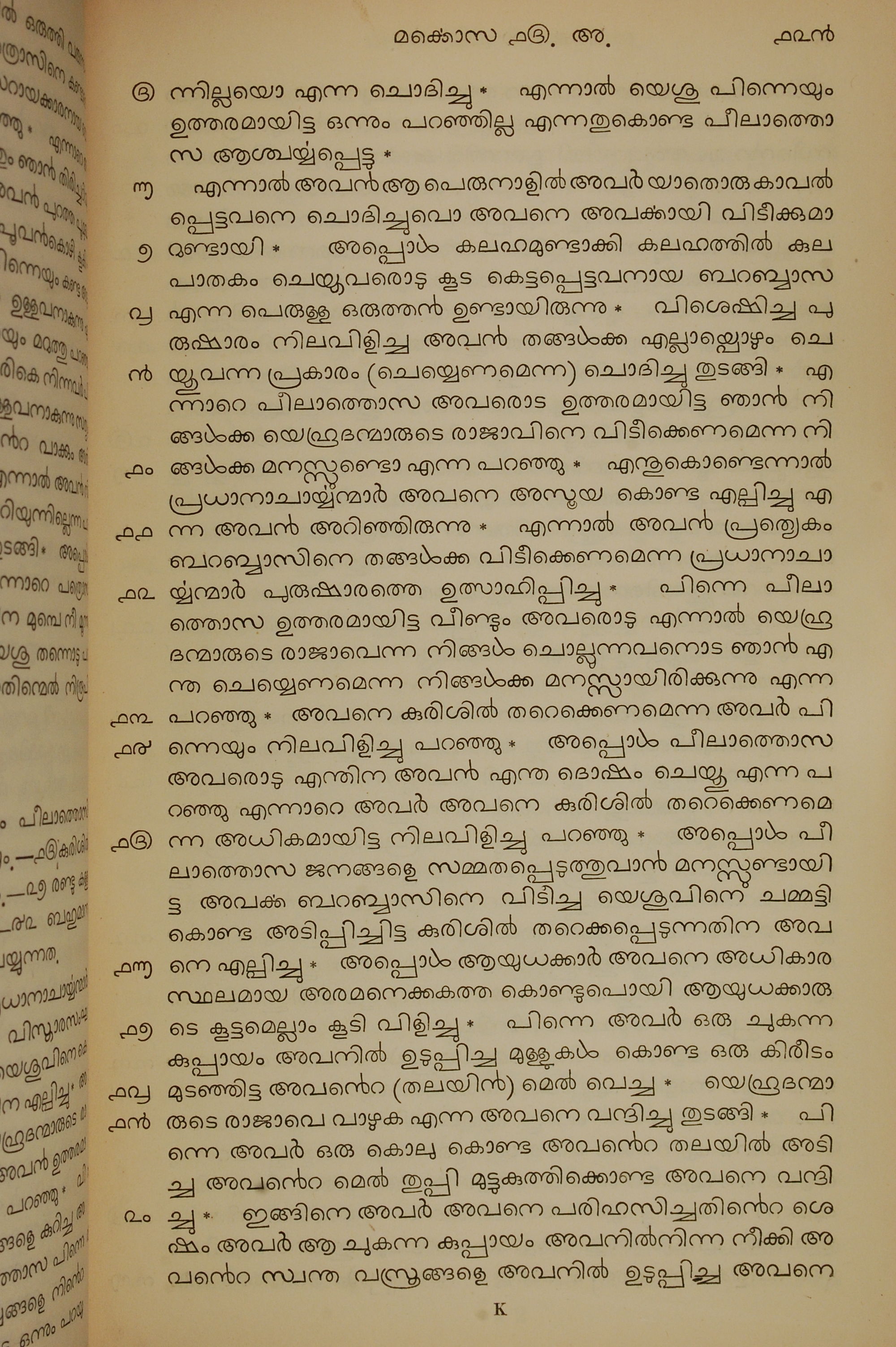 1834年馬來文聖經四福音與使徒行傳 馬可福音 15 章 5 節到 15 章 20 節