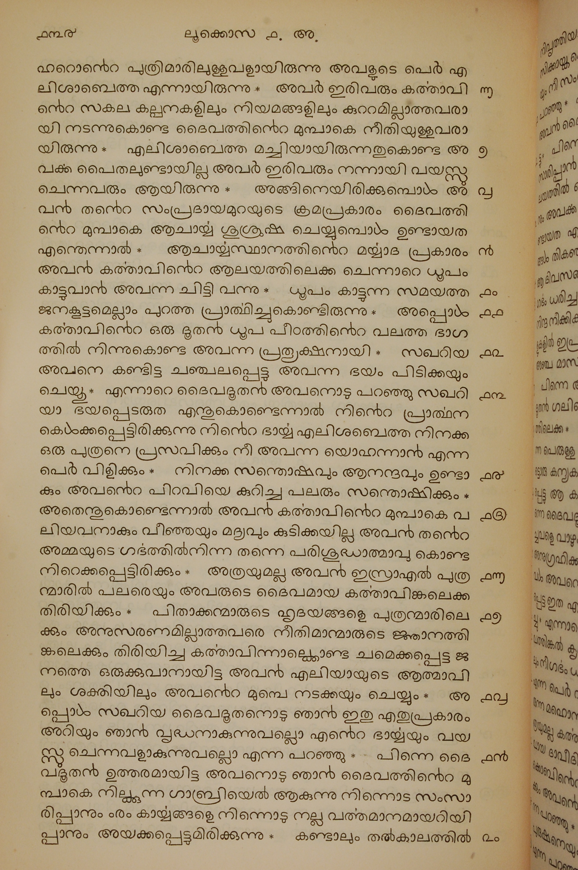 1834年馬來文聖經四福音與使徒行傳 路加福音 1 章 6 節到 1 章 20 節