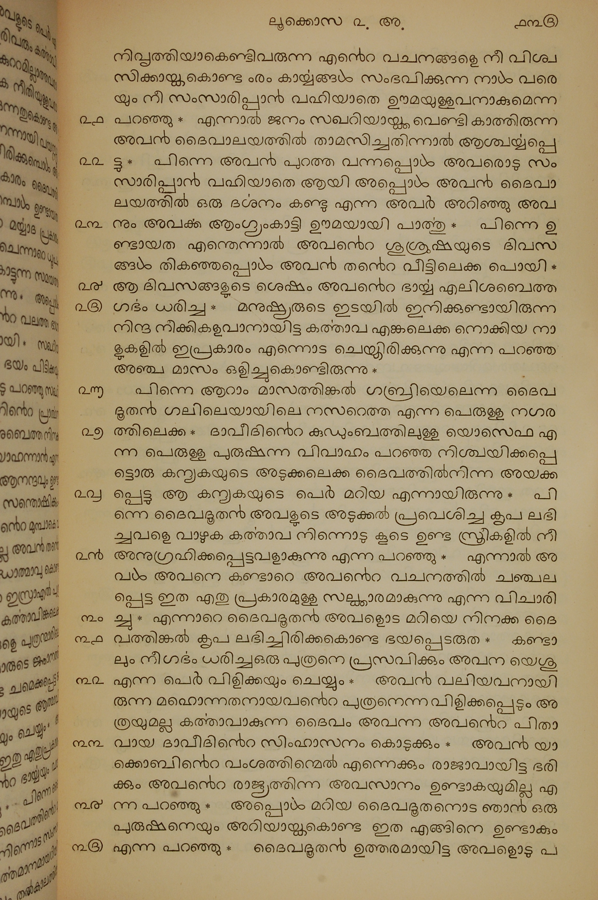 1834年馬來文聖經四福音與使徒行傳 路加福音 1 章 21 節到 1 章 35 節