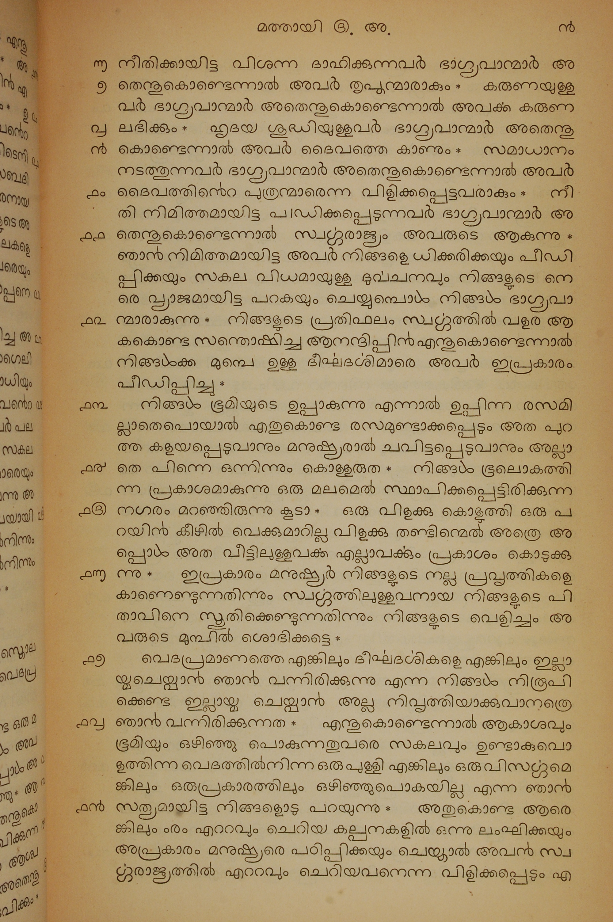 1834年馬來文聖經四福音與使徒行傳 馬太福音 5 章 6 節到 5 章 19 節