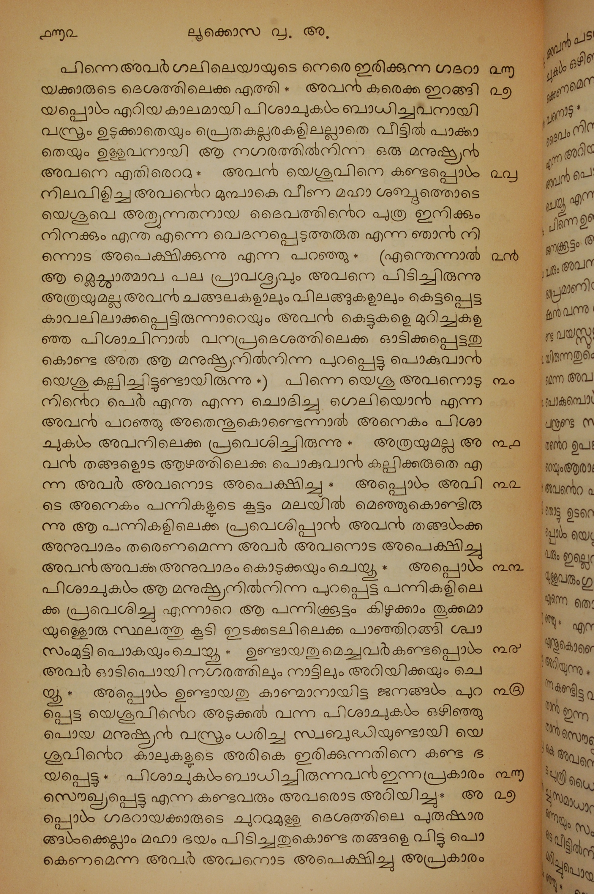 1834年馬來文聖經四福音與使徒行傳 路加福音 8 章 26 節到 8 章 37 節