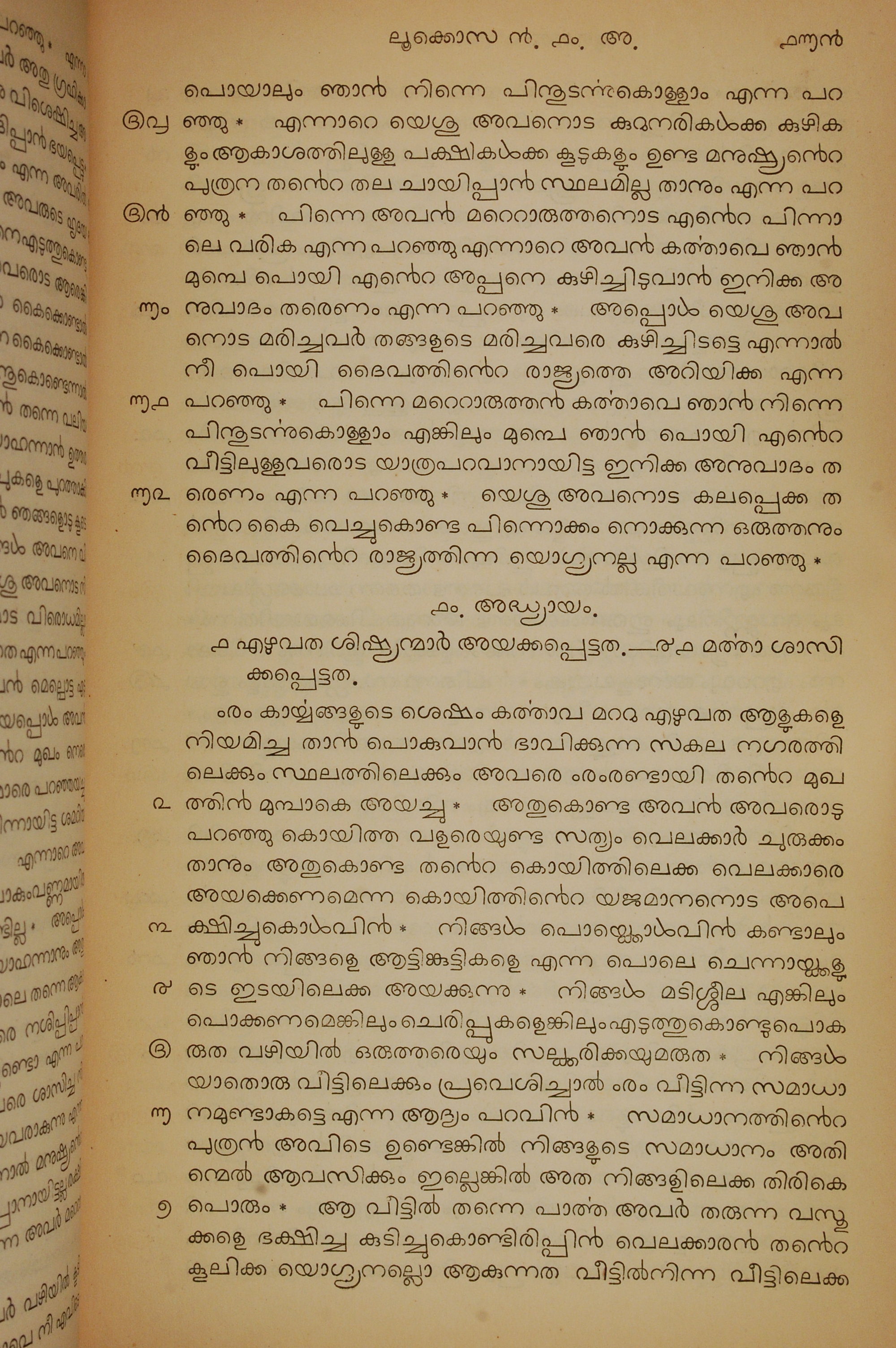 1834年馬來文聖經四福音與使徒行傳 路加福音 9 章 58 節到 10 章 7 節