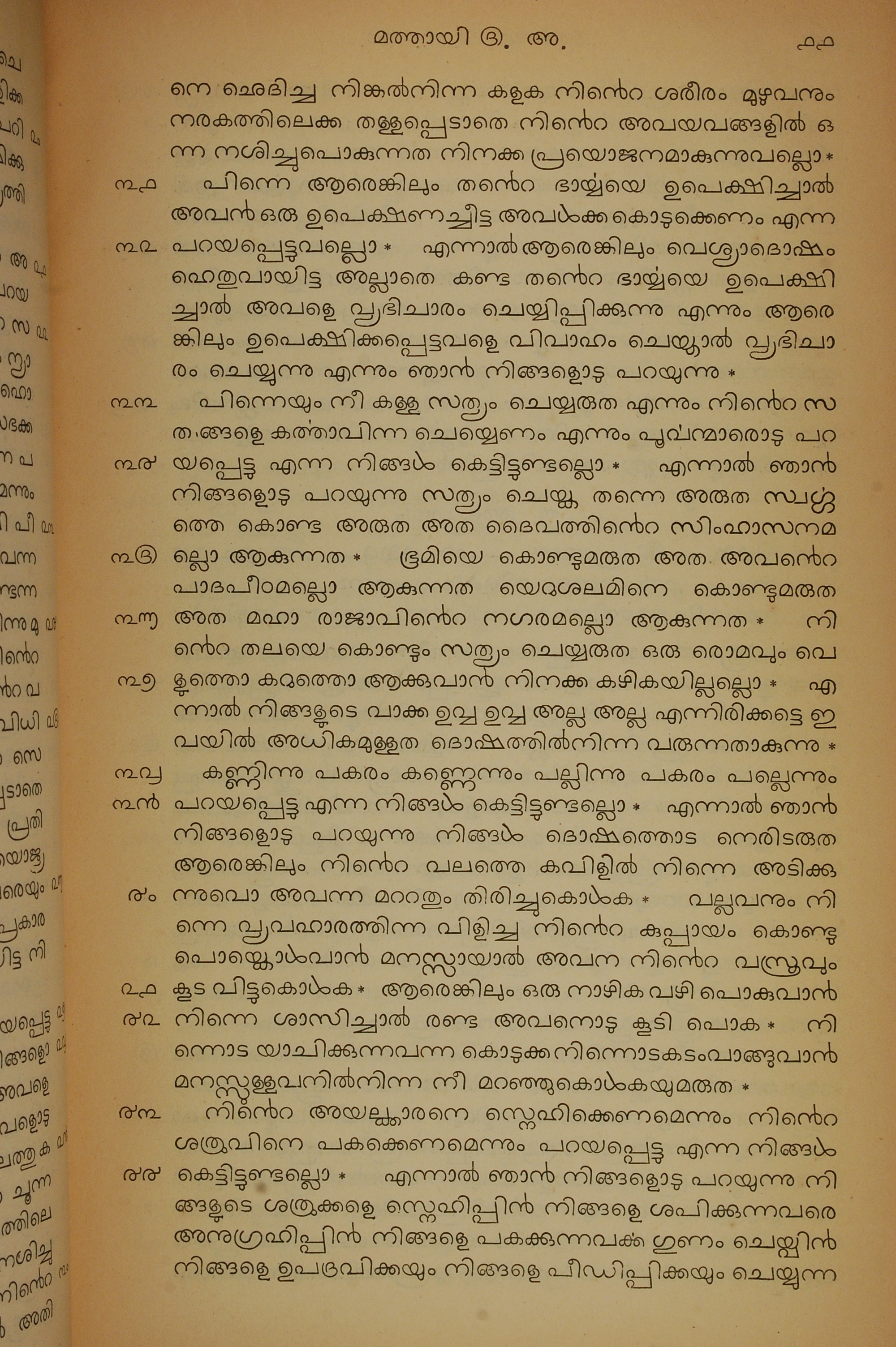 1834年馬來文聖經四福音與使徒行傳 馬太福音 5 章 31 節到 5 章 44 節