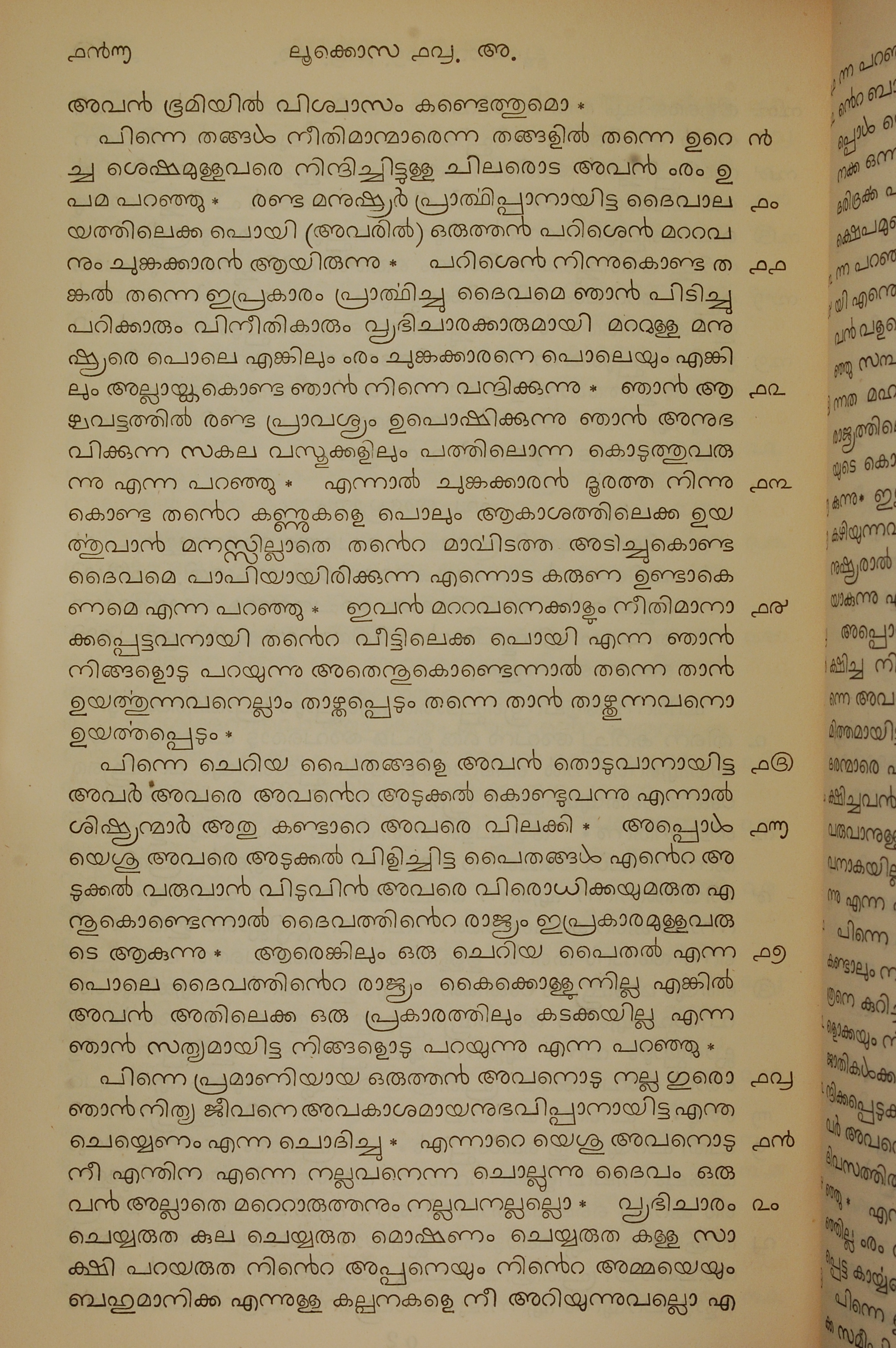 1834年馬來文聖經四福音與使徒行傳 路加福音 18 章 9 節到 18 章 20 節