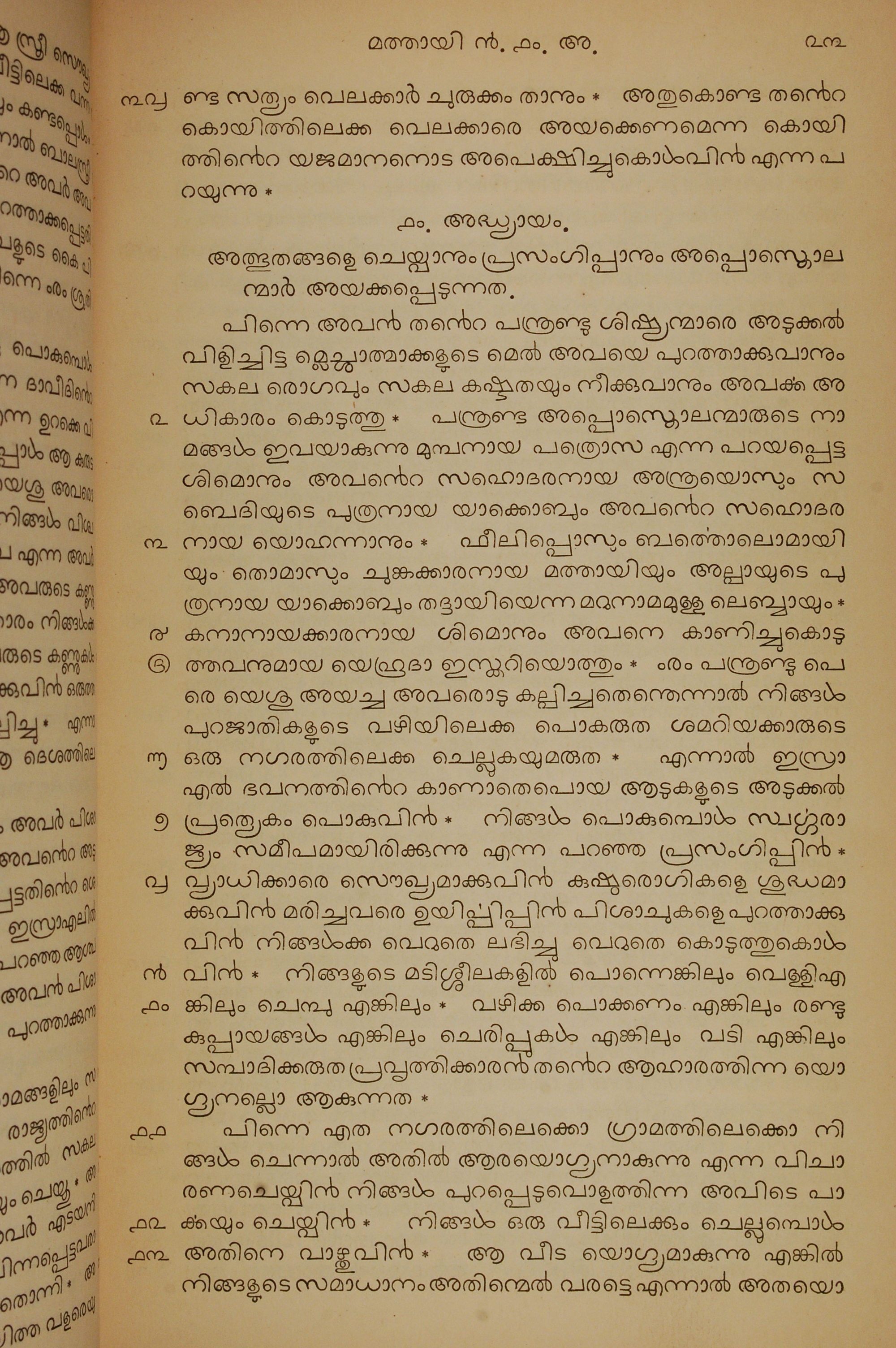 1834年馬來文聖經四福音與使徒行傳 馬太福音 9 章 38 節到 10 章 13 節
