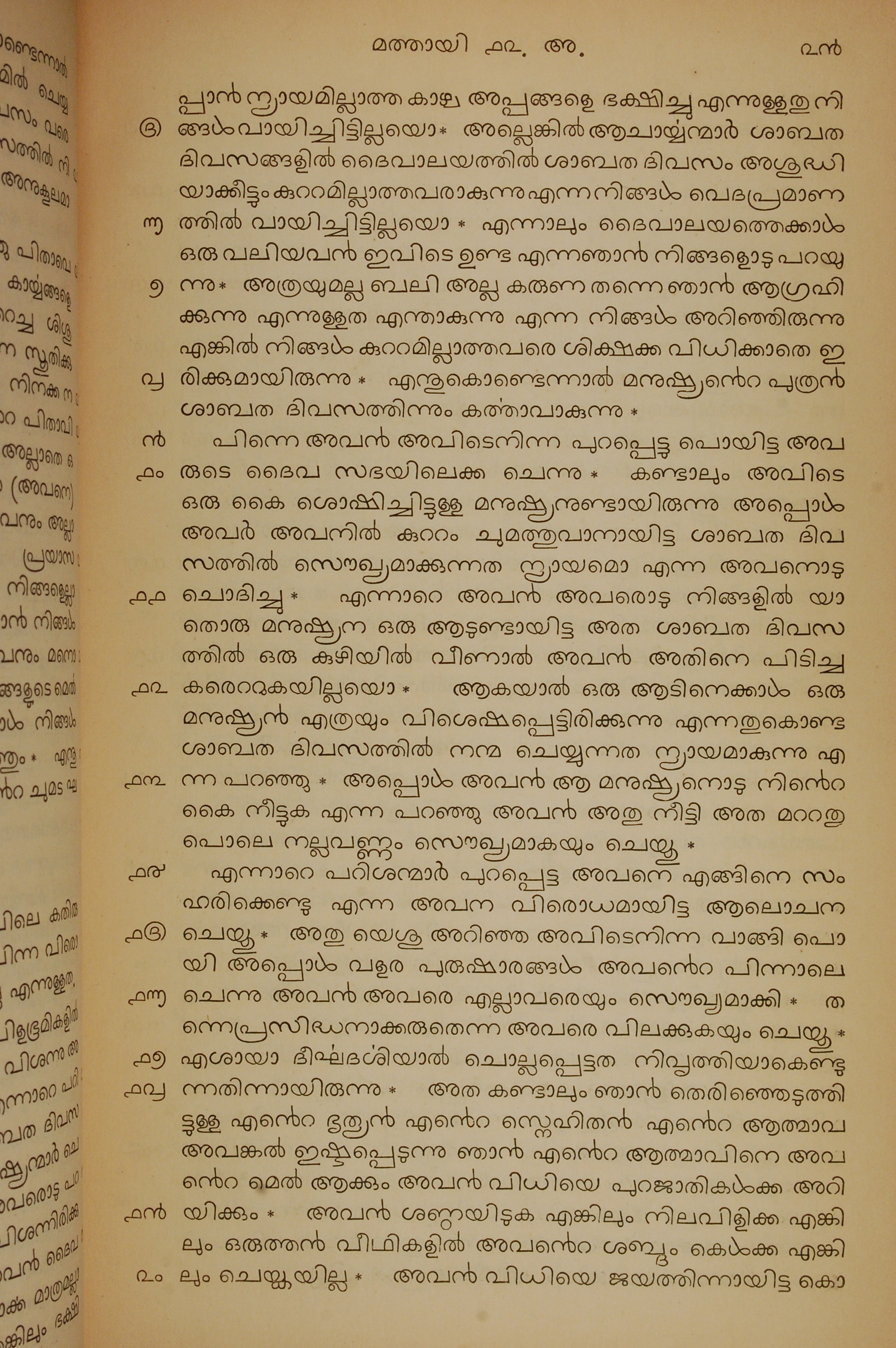 1834年馬來文聖經四福音與使徒行傳 馬太福音 12 章 5 節到 12 章 20 節
