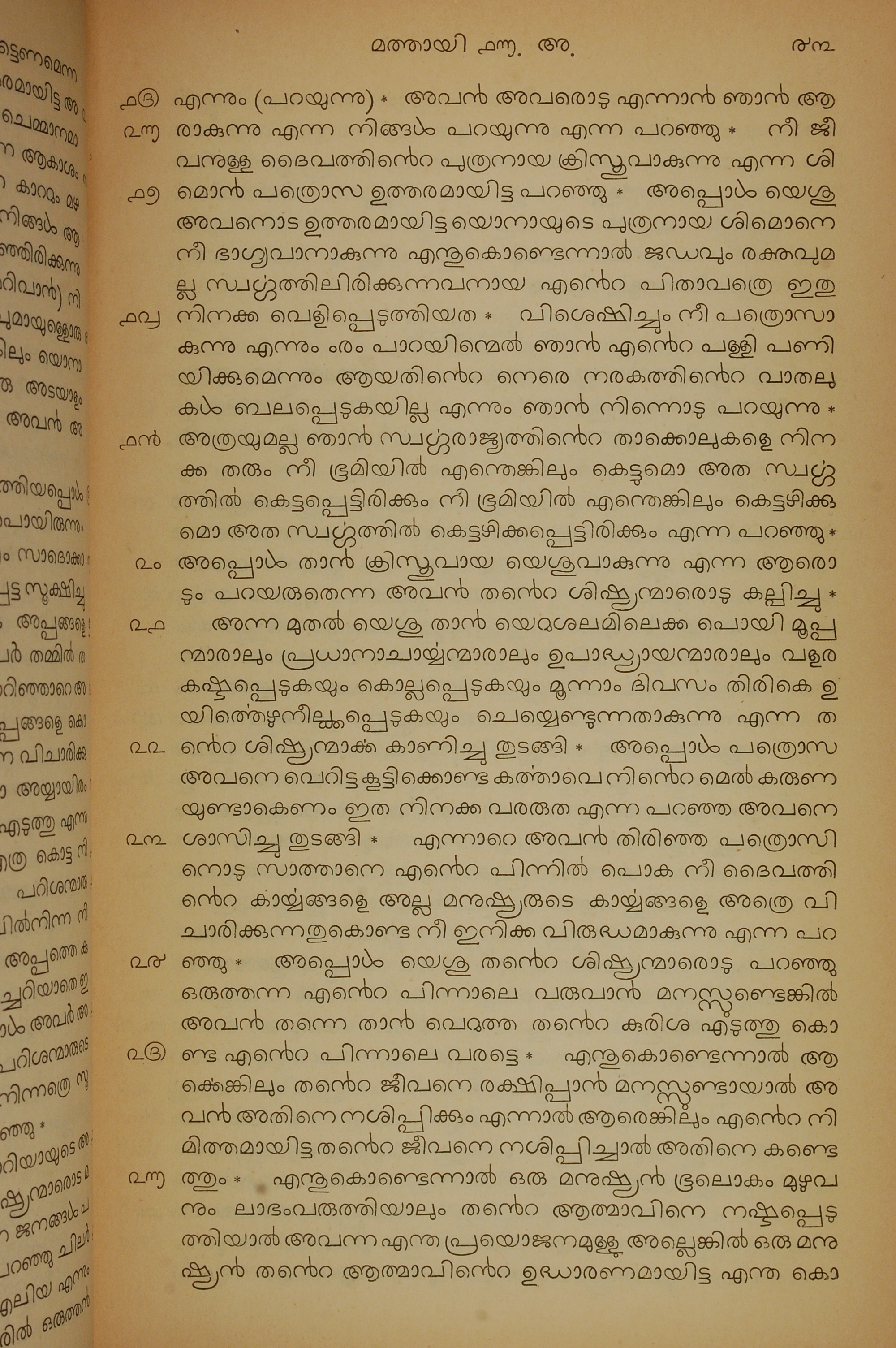 1834年馬來文聖經四福音與使徒行傳 馬太福音 16 章 15 節到 16 章 26 節