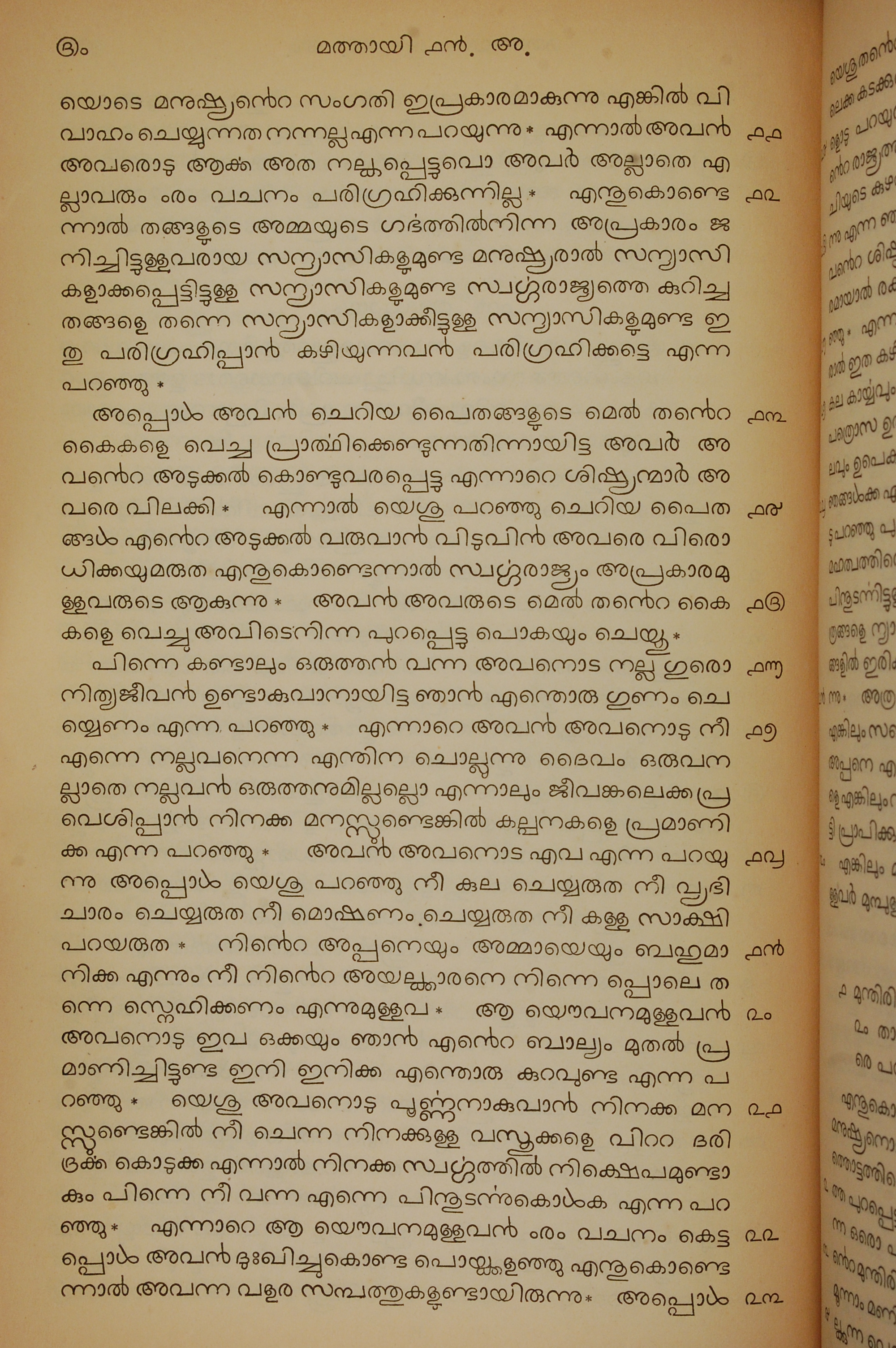 1834年馬來文聖經四福音與使徒行傳 馬太福音 19 章 11 節到 19 章 23 節