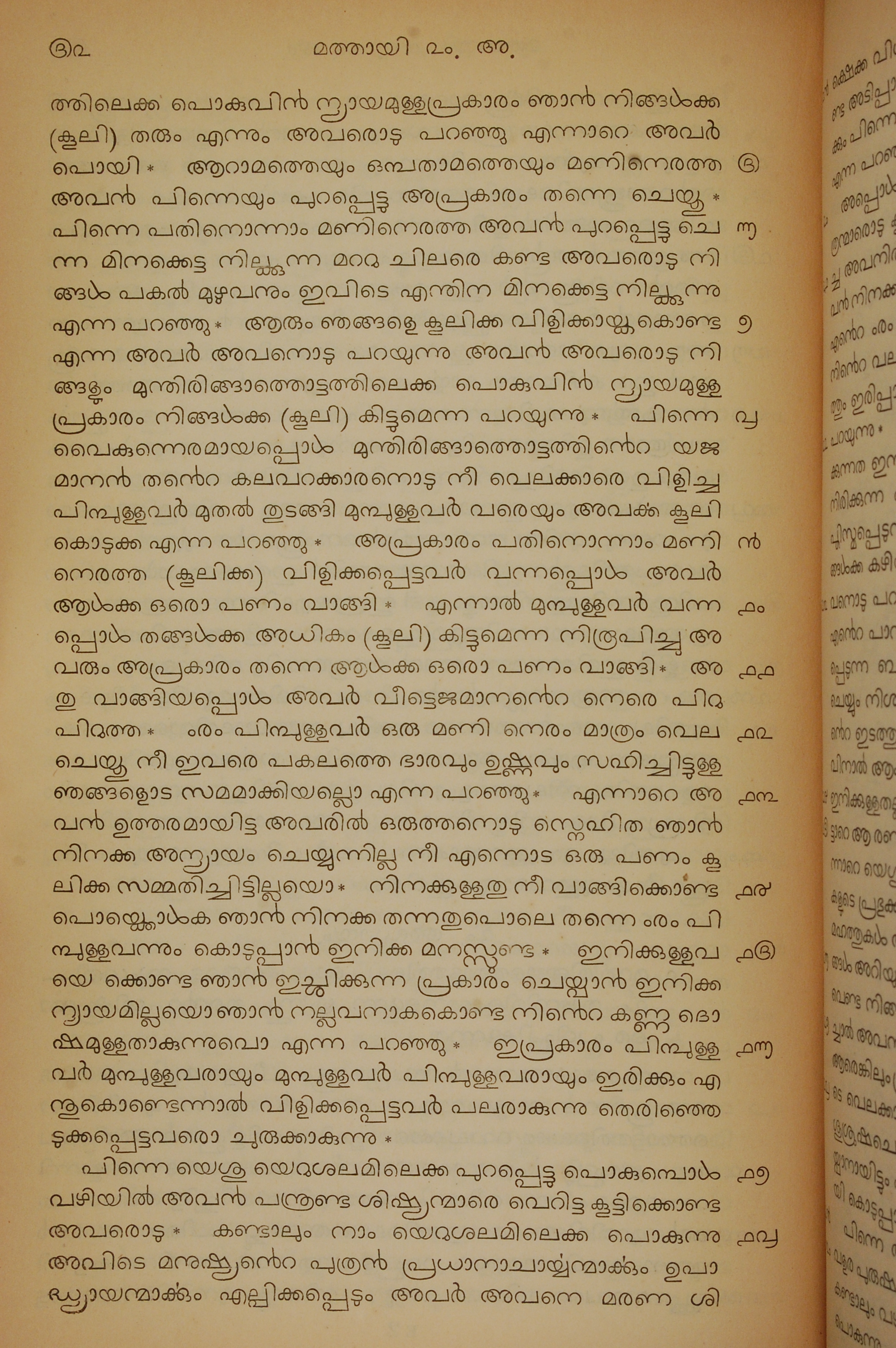 1834年馬來文聖經四福音與使徒行傳 馬太福音 20 章 5 節到 20 章 18 節