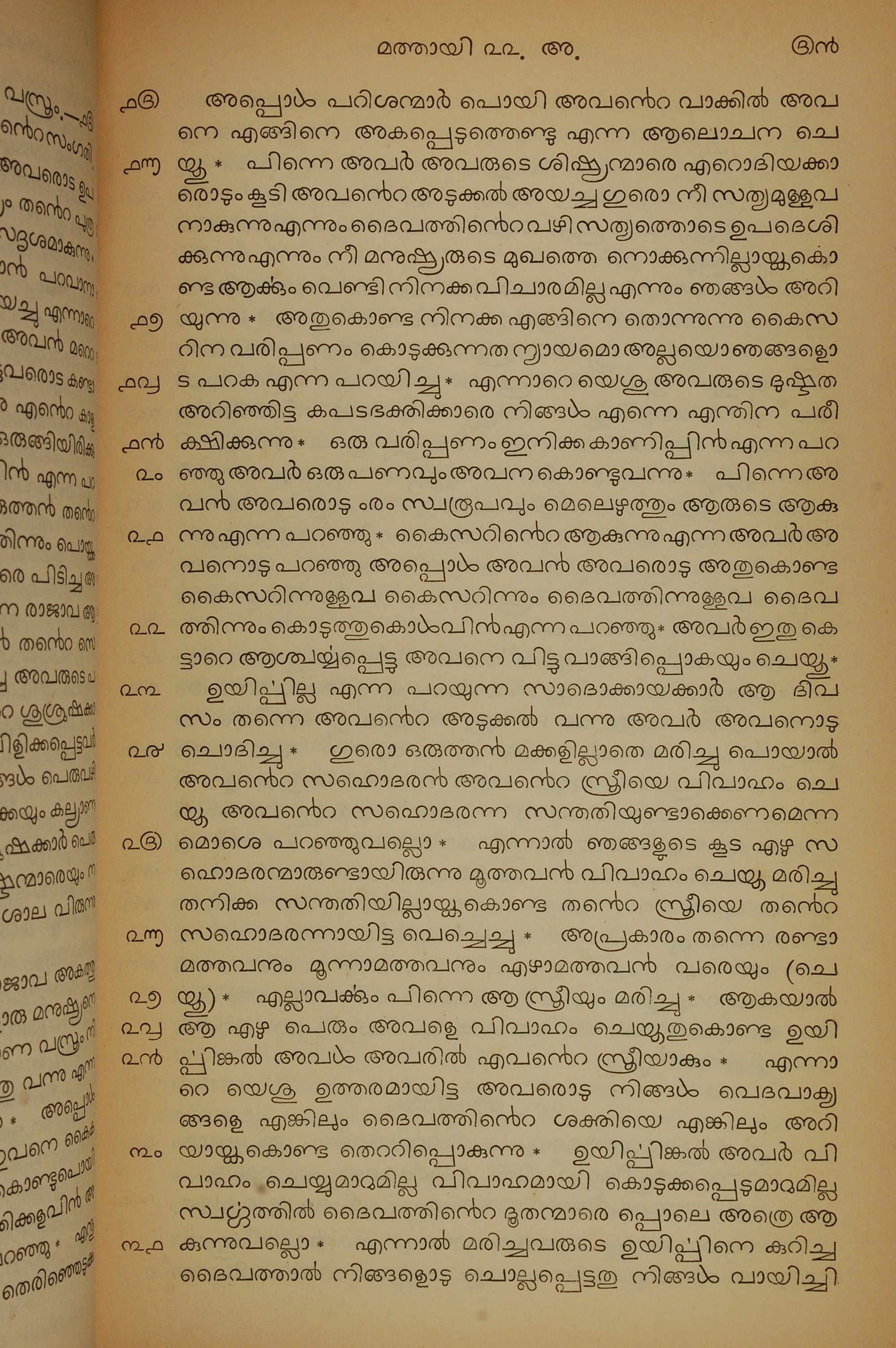 1834年馬來文聖經四福音與使徒行傳 馬太福音 22 章 15 節到 22 章 31 節