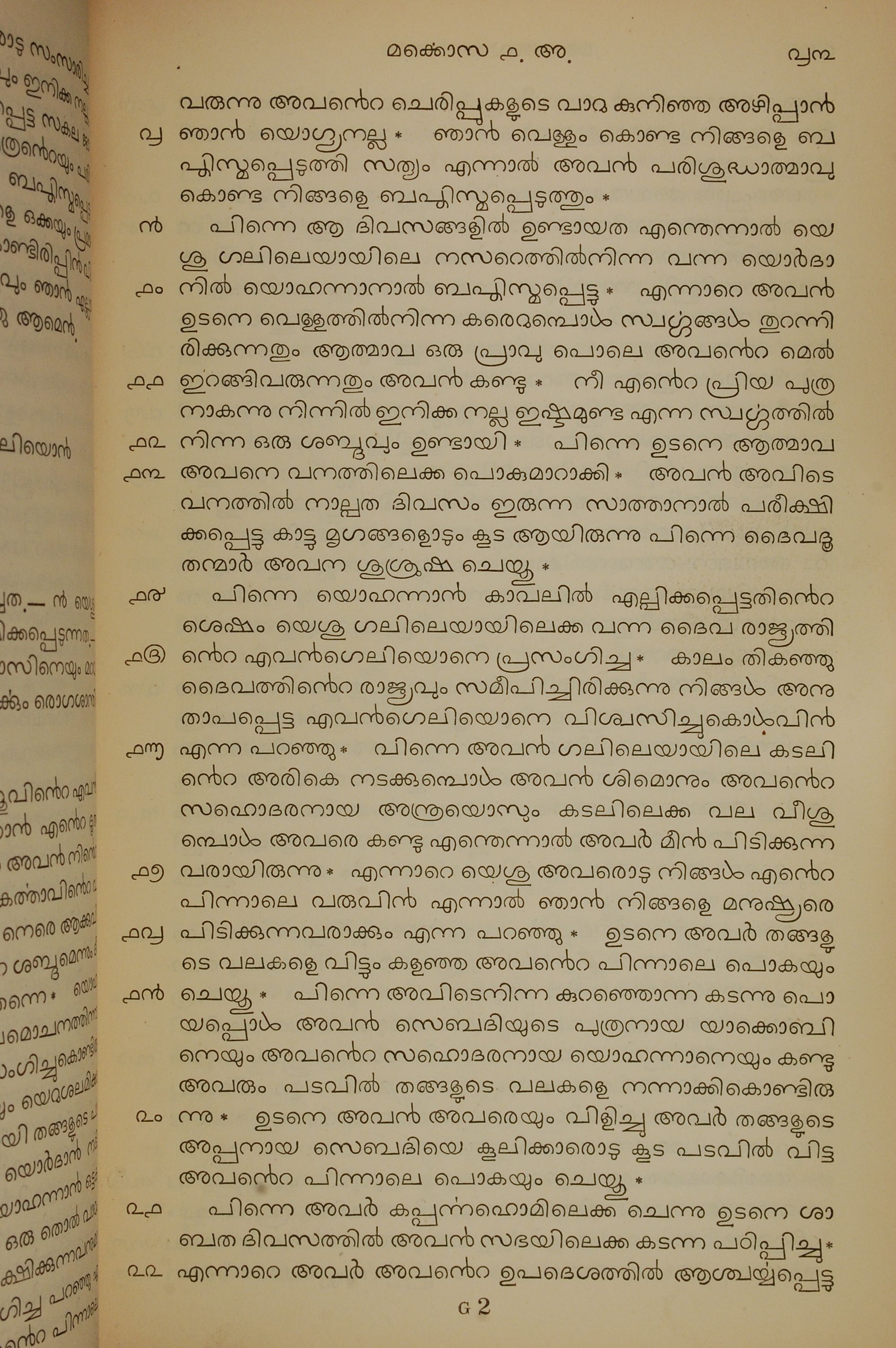 1834年馬來文聖經四福音與使徒行傳 馬可福音 1 章 8 節到 1 章 22 節