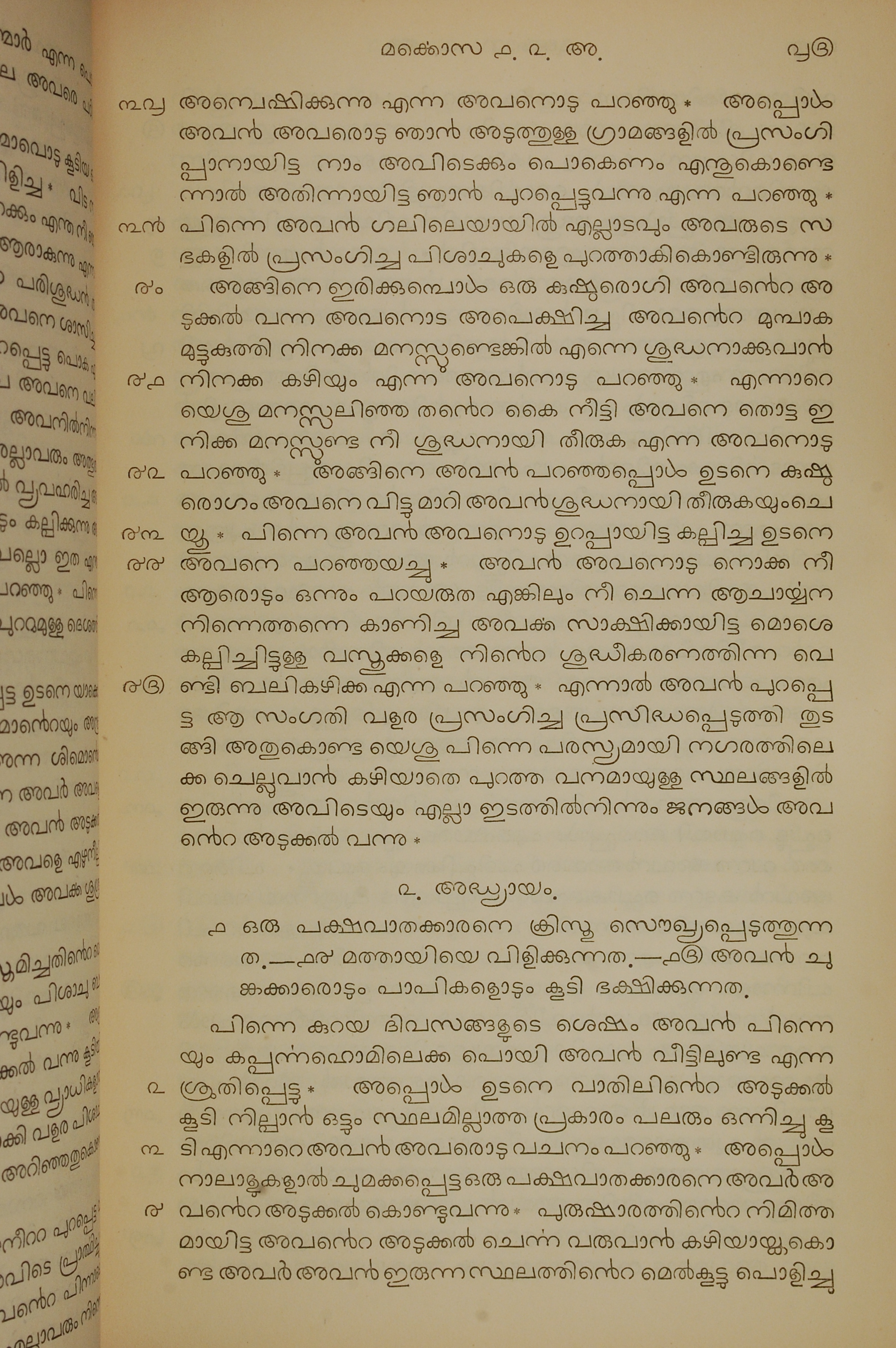 1834年馬來文聖經四福音與使徒行傳 馬可福音 1 章 38 節到 2 章 4 節