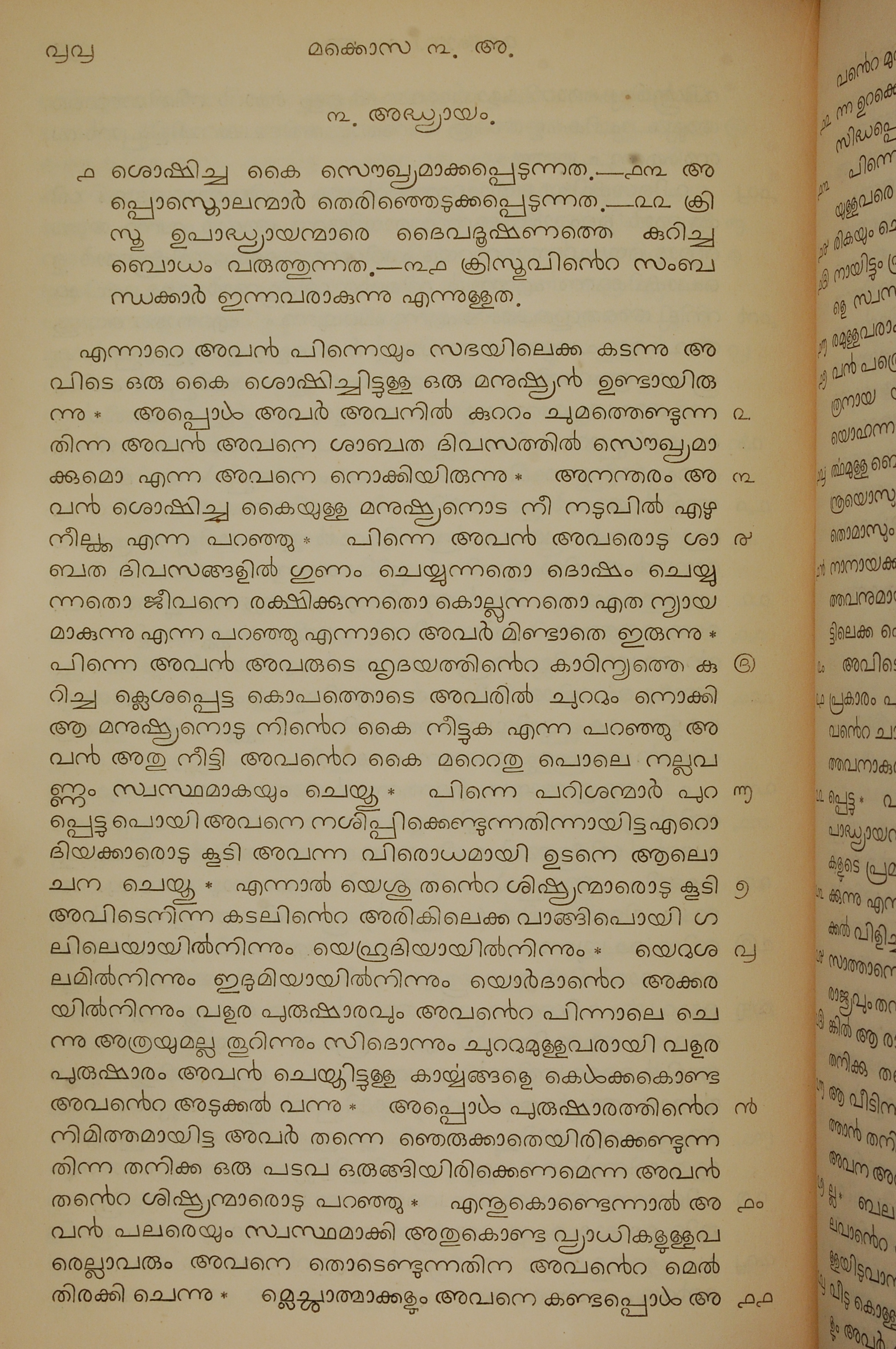 1834年馬來文聖經四福音與使徒行傳 馬可福音 3 章 1 節到 3 章 11 節