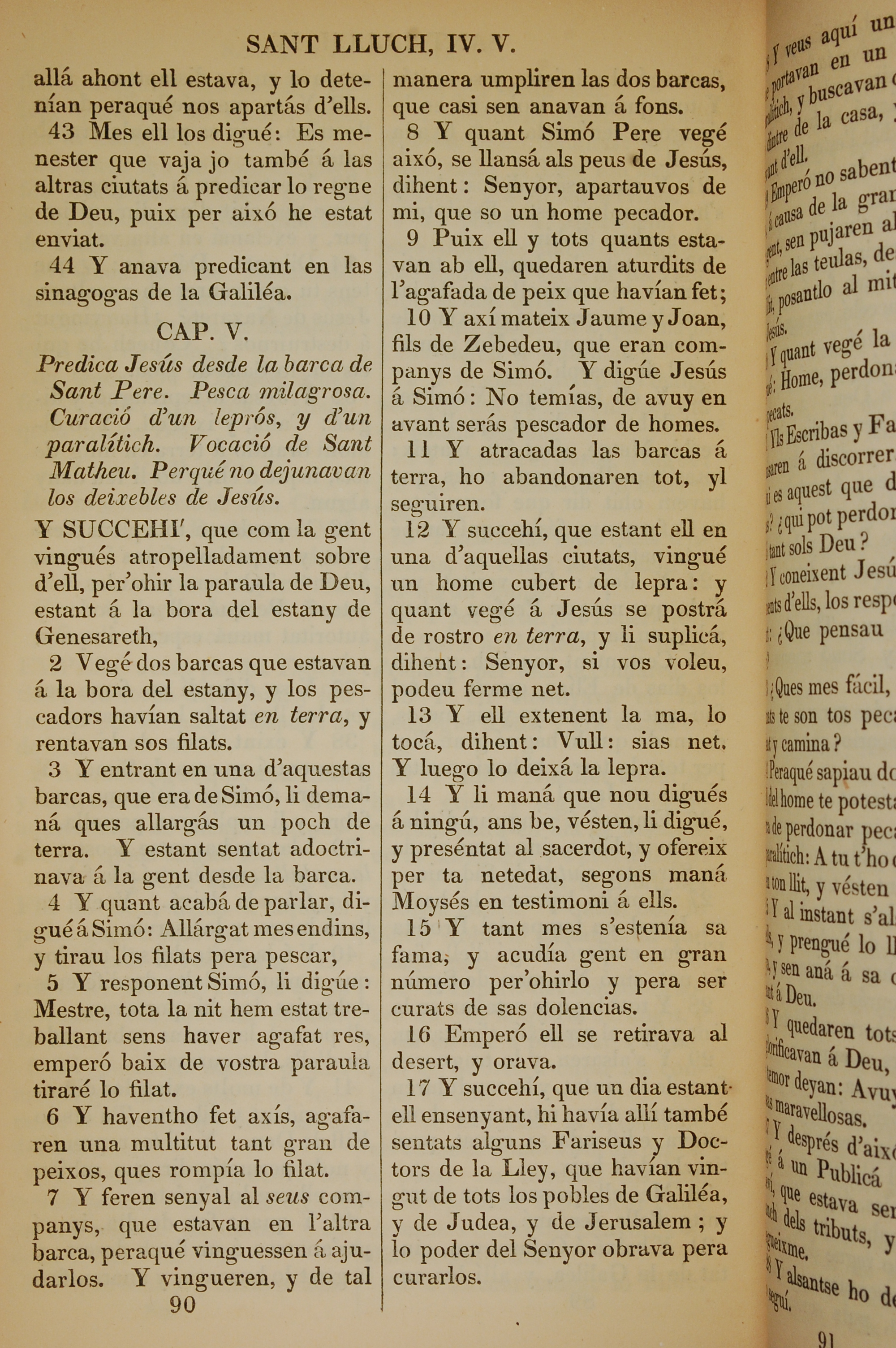 1835年加泰羅尼亞語新約全書 路加福音 4 章 43 節到 5 章 17 節